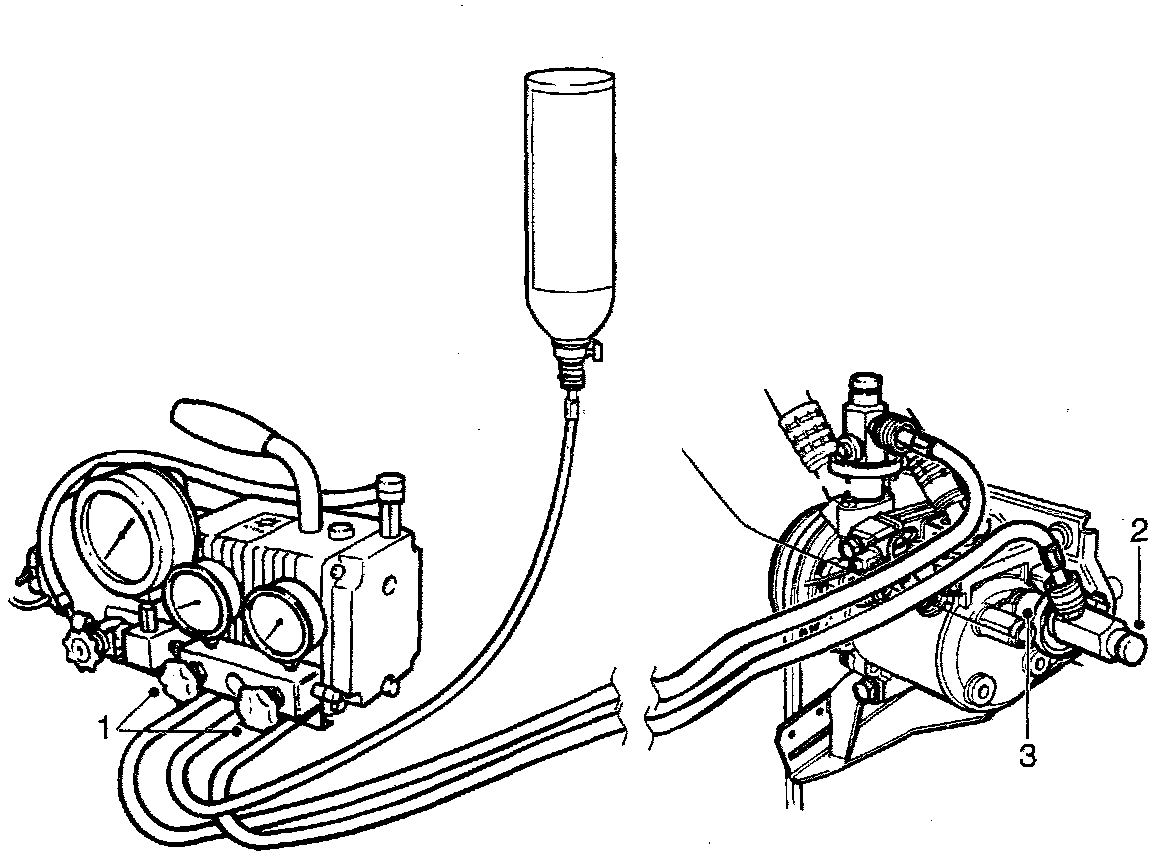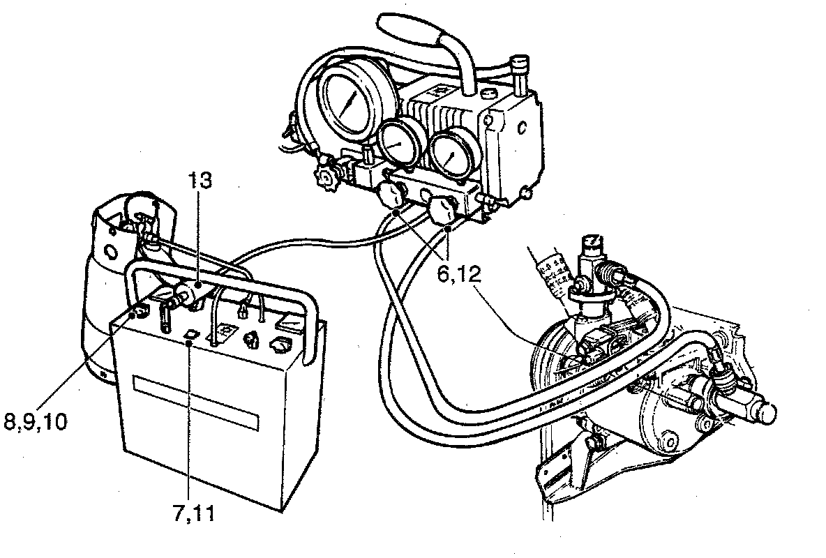 13. Move the A/C hoses slightly and make sure that there are no leaks in the system. The pressure must not increase by more than 10 mbar in 5 minutes.