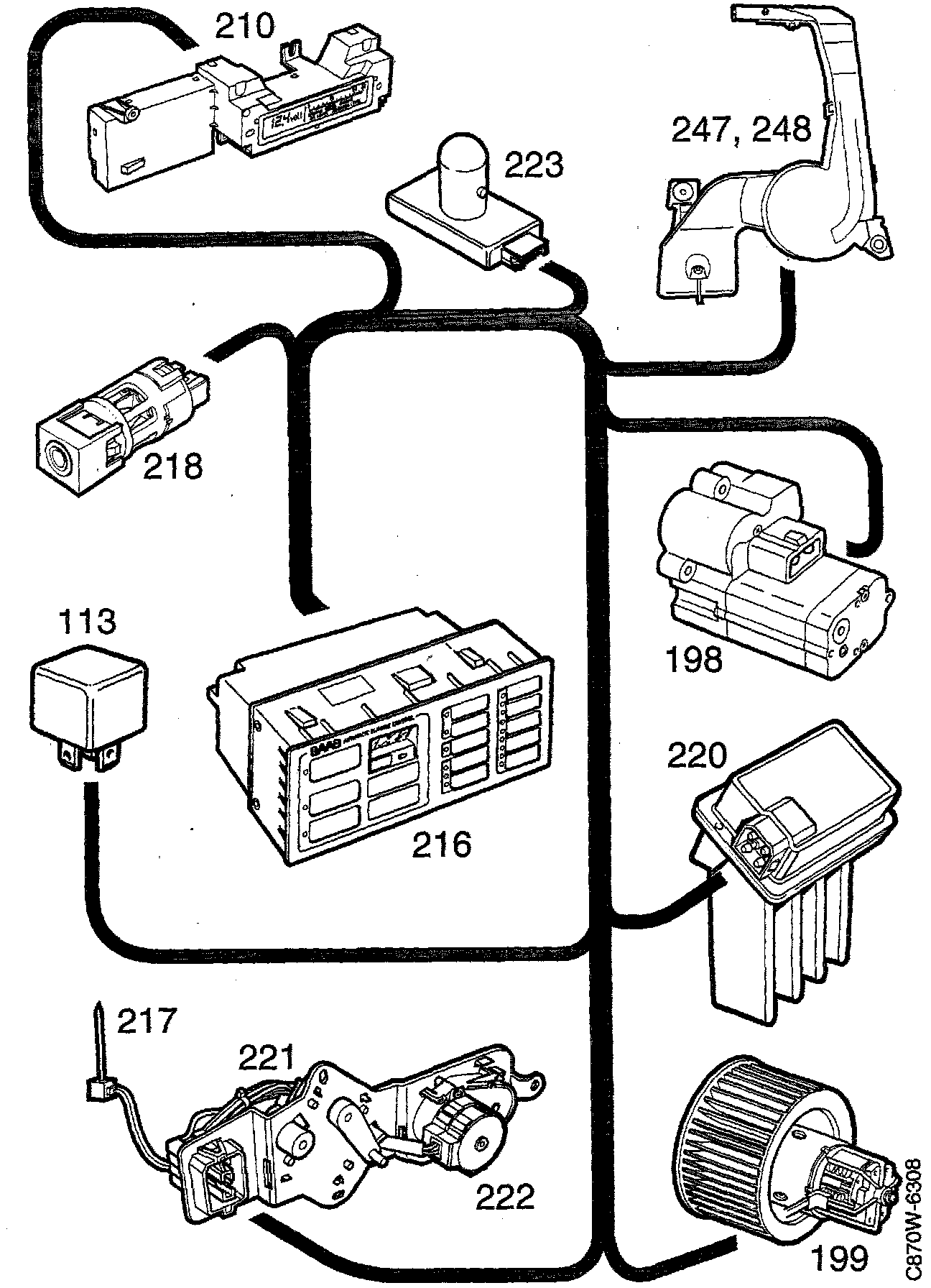 2. A blended air temperature sensor is fitted in the defroster outlet on the heating and ventilation unit. This measures the temperature of the air that is blown out of the heating and ventilation unit.