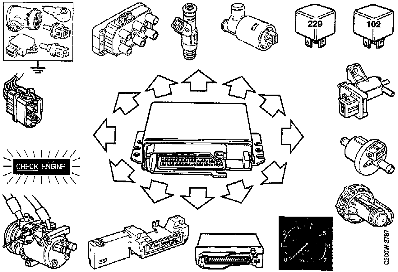 The principal measured quantity for fuel injection comes from the mass air flow sensor. Substitute functions are provided for all sensors except the crankshaft position sensor.