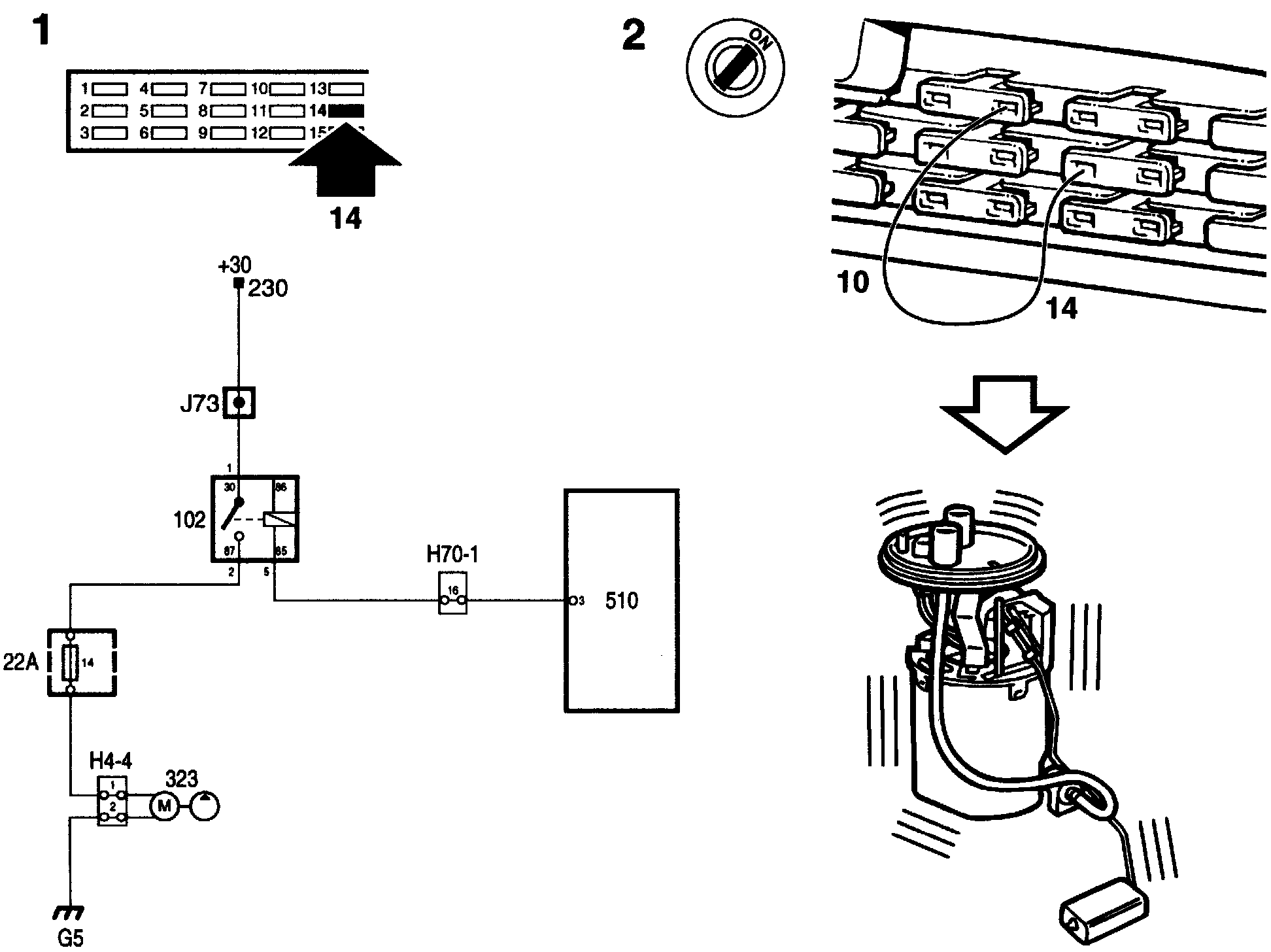 1. Check fuse 14 (fuel pump).
