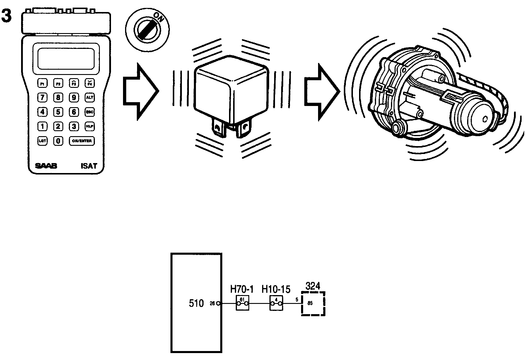 Select "REAR OXYGEN SENSOR". When Lambda control does not work, i.e. the Scan Tool display oscillates between 0.1 V and 0.9 V, connect a jumper lead across pins 30 and 87 of the relay base for 5-10 seconds. The oxygen sensor voltage does not oscillate and remains steady at 0.45 V.