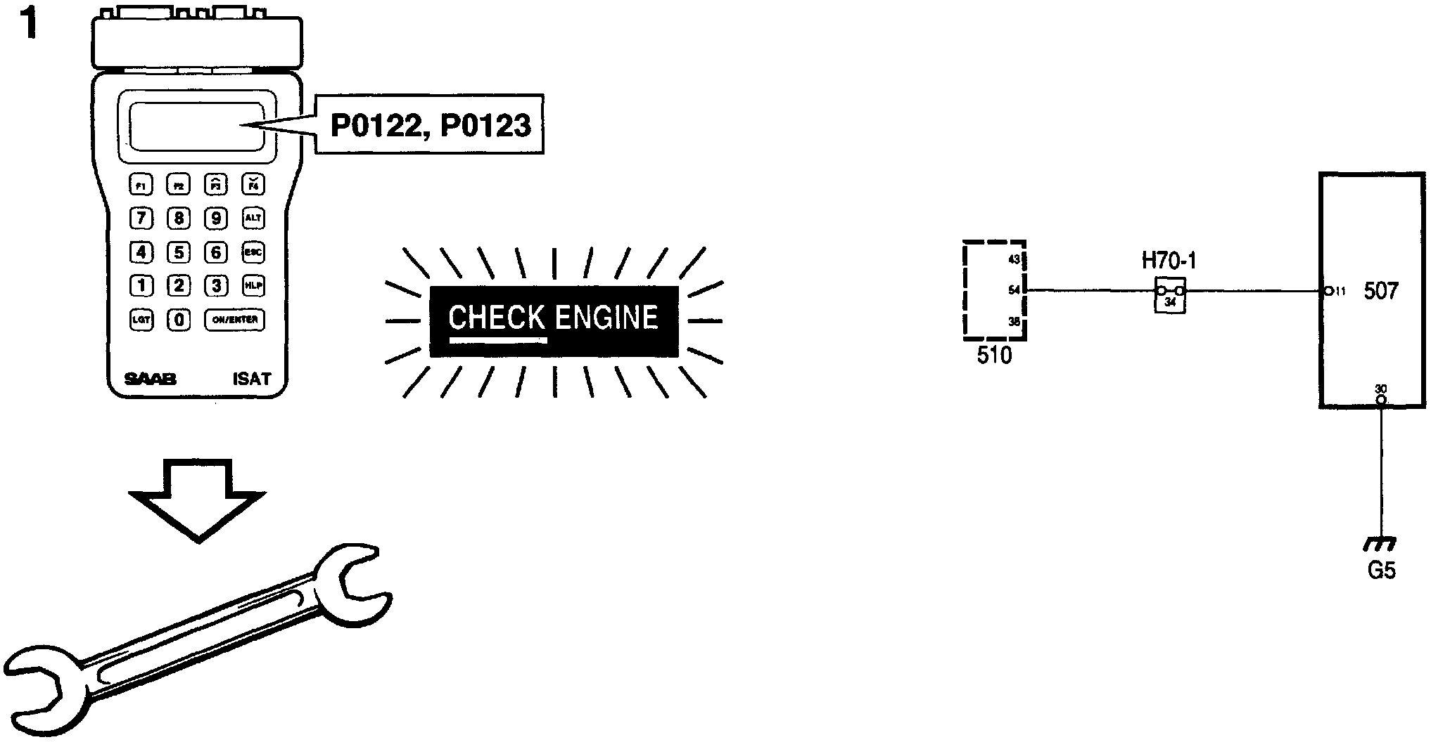 NOTE: Check whether P0122 or P0123 is stored. These trouble codes are electrical faults in the throttle position sensor. The CHECK ENGINE lamp (MIL) should be on.
