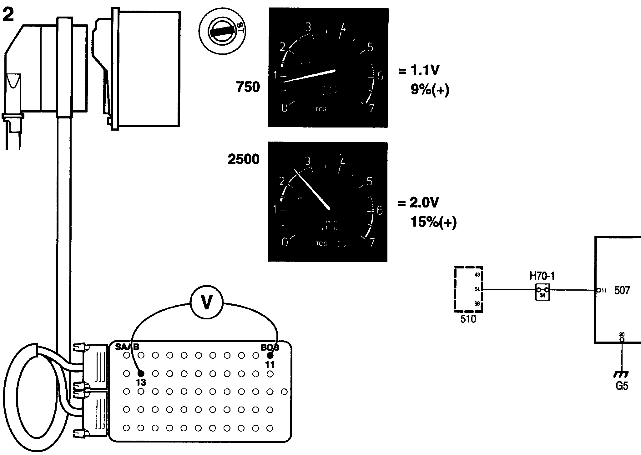 If the signal is not OK, check the lead between pin 54 of the Motronic control module and pin 11 of the TCS control module for continuity/shorting.