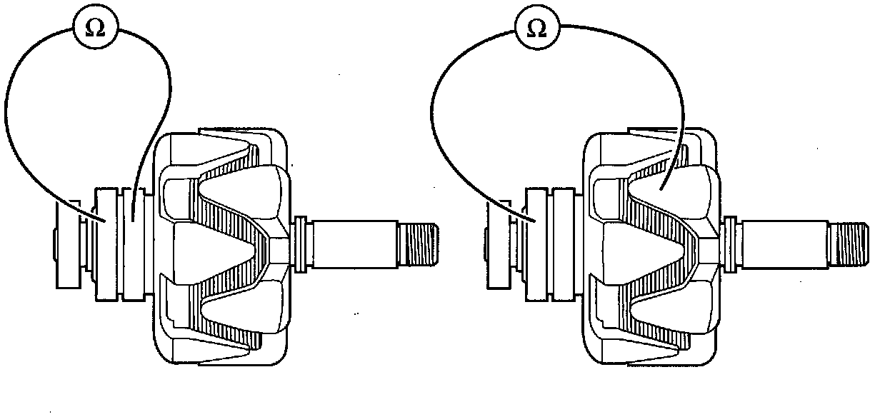 Use an ohmmeter (5 x 1000 range) to measure the resistance between one of the slip rings and the generator (stator) frame.