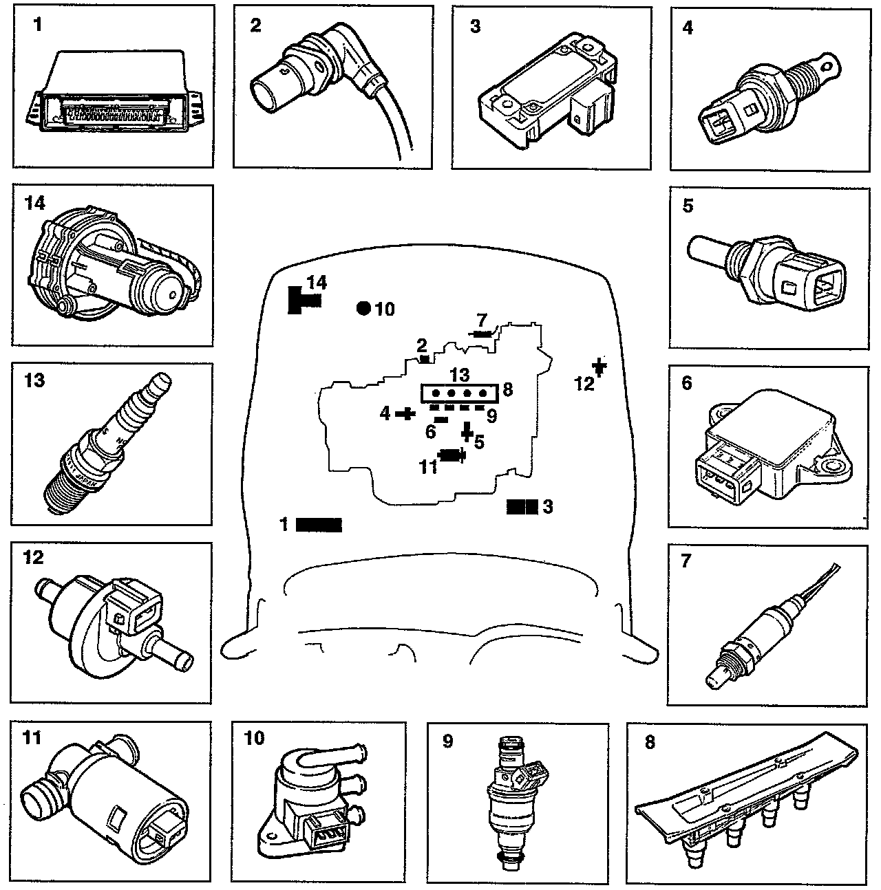14. Secondary air injection device (certain markets from M94).