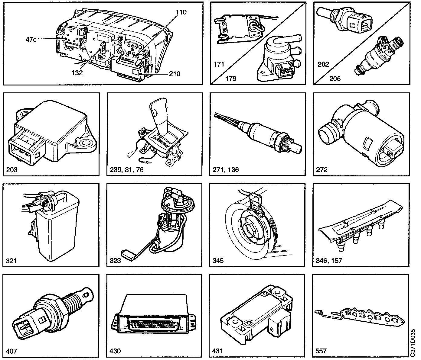 171 Antifrost thermostat on the evaporator casing below the windscreen on the right-hand side.