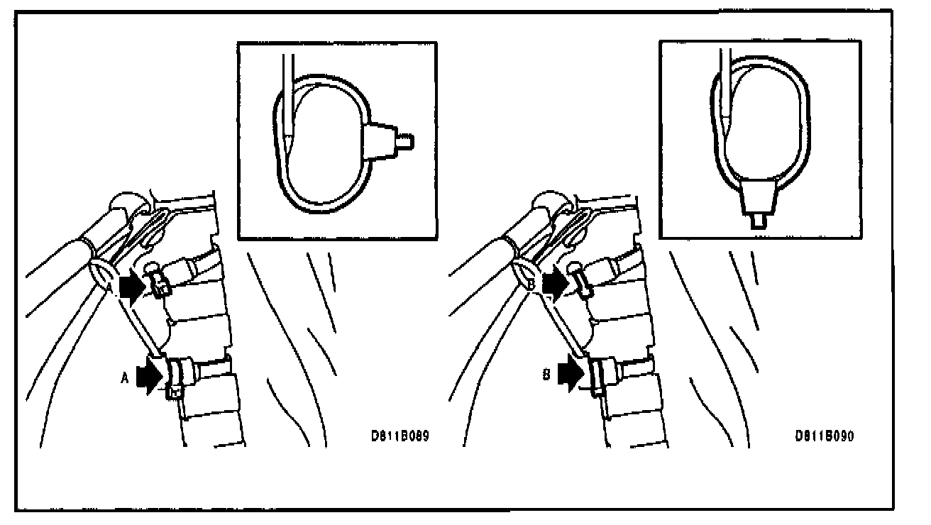 If they are mounted as in illustration A, they must be removed and replaced with new ones. The new cable ties are to be mounted as in illustration B.