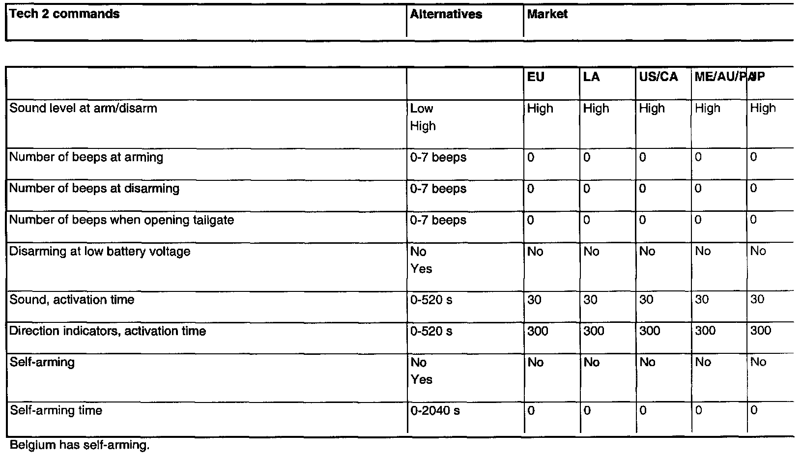 A number of parameters for the anti-theft function are preset to suit the requirements of various markets (countries).