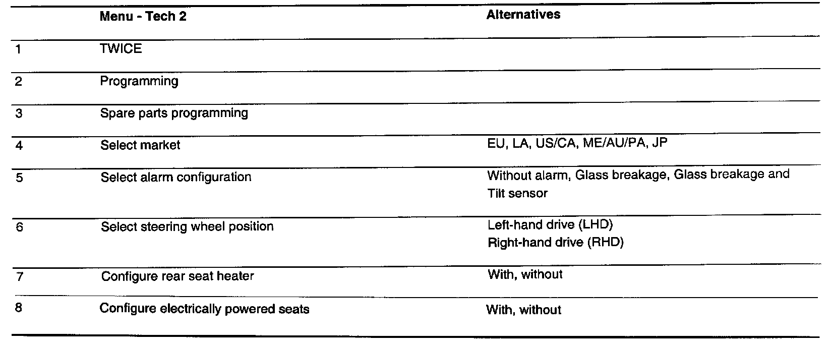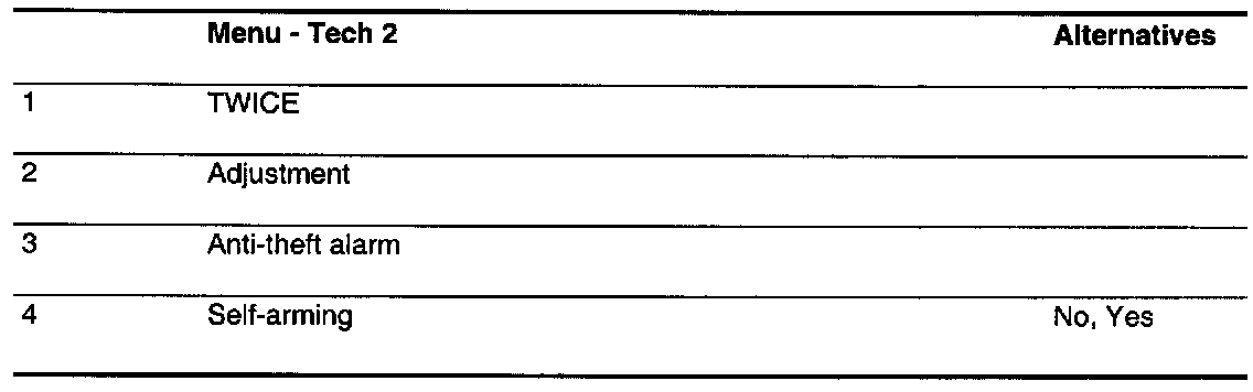 The anti-theft protection function is controlled by TWICE which has its basic program from the control module supplier. However, this basic programming may not satisfy the requirements of all markets (countries) and additional programming may be needed during manufacture of the car. This is called "Factory programming".