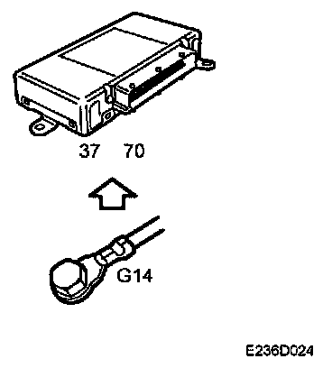 Control Module GroundGround connections, power groundThe control module is grounded at grounding point G14 via pin 70.