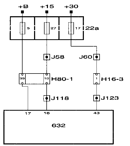 Power supply +B circuitFrom fuse 5 (22a) to the control module pin 17.