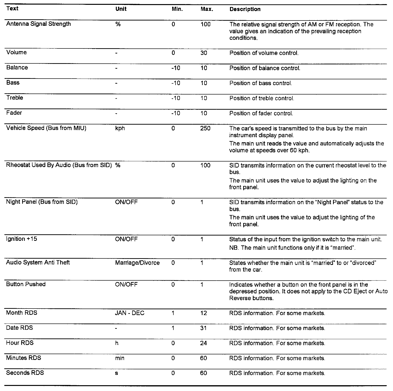 Menu "Read Values":