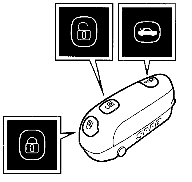 All Saab 9-5 models have remote control. On delivery, 2 remote control units are supplied for each car. They are used to control the central locking, as a back-up for the immobilizer and to arm/disarm the anti-theft alarm.
