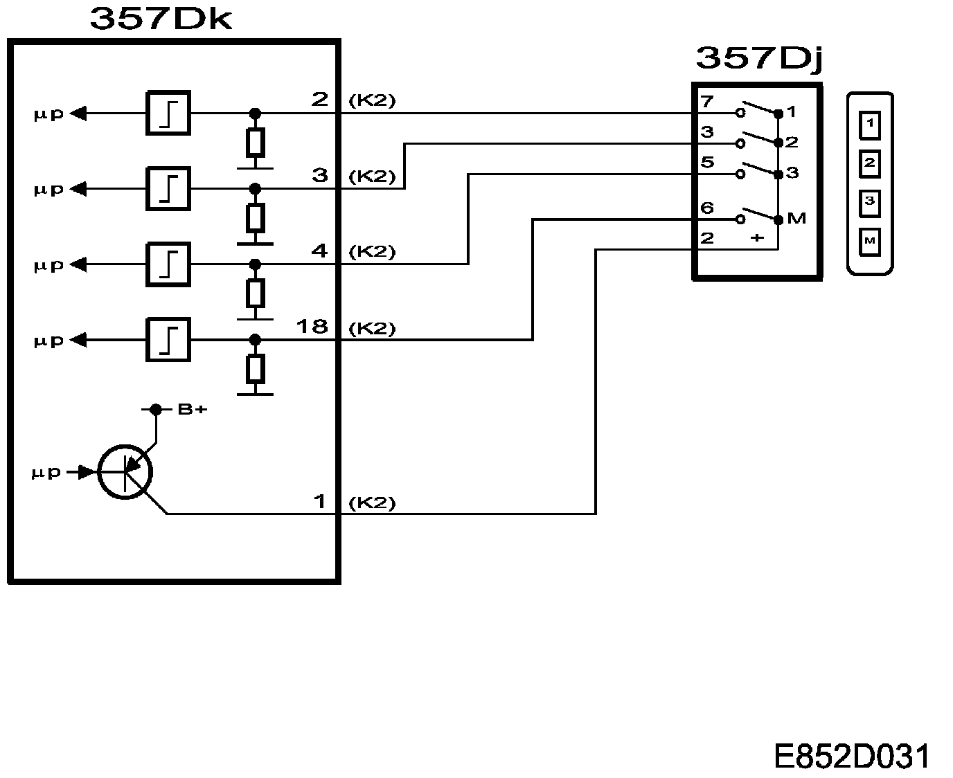 The switch for the memory and store function comprises four buttons. Three buttons, "1", "2", "3" and the store button, "M".
