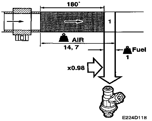 The basic fuel quantity has been calculated to give an air/fuel ratio of 14.7:1. The calculation is based on the reading obtained from the mass air flow sensor. Air leaks and tolerances in the mass air flow sensor can affect this calculation. When the fuel quantity is subsequently converted into injection duration, the control module assumes the flow through the injectors to be functioning faultlessly. Tolerances in the injectors and variations in the fuel pressure can affect this calculation.