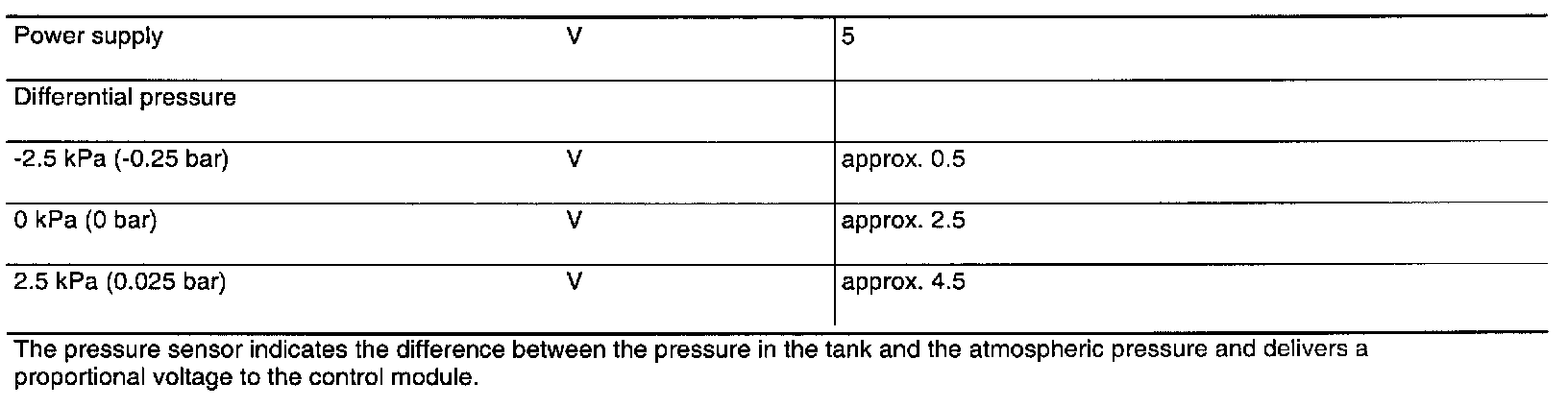 Fuel Tank Pressure Sensor: Specifications