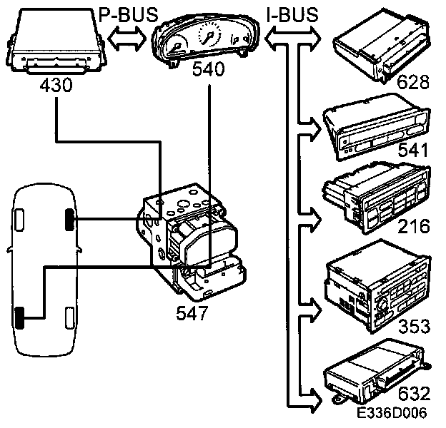 The ABS has extremely good diagnostics for its wheel sensors. This means that with a high degree of certainty the wheel speed signals will be present on the control module's tour outputs if no diagnostic trouble codes have been generated in the system. Neither the main instrument unit nor any of the other bus systems have speed signal diagnostics for the rear left wheel. If the speedometer is working, however, it is certain that speed information is present on the bus and consequently available to all systems connected to the bus.