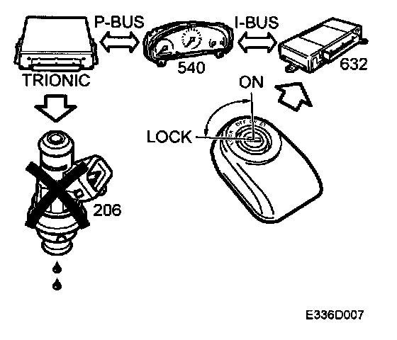 If the key and the MIU's ID number are OK, the TWICE sends out the message "Immobilization OFF" on the bus. This information is used by the Trionic which cancels fuel shut-off, which is always activated every time the ignition is switched on.