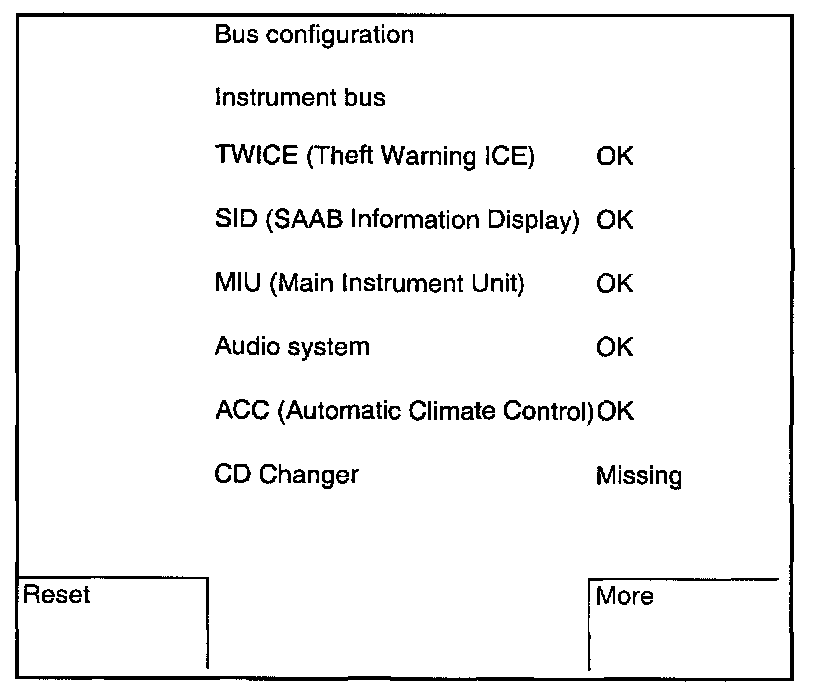 If a control module connected to a bus, such as the CD changer, is removed from the car, the list can be reset to zero with a command under "All systems/Read/Clear Configuration" or "DICE/Read/Clear Configuration".
