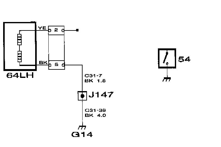 Certain components are grounded directly to the body, e.g. the door switches. These ground connections are indicated by a thicker line than normal connections to the grounding point.
