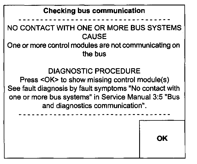 If the Tech 2 is in communication with the DICE but one or more control modules connected to a bus are missing, this menu will appear on the Tech 2: