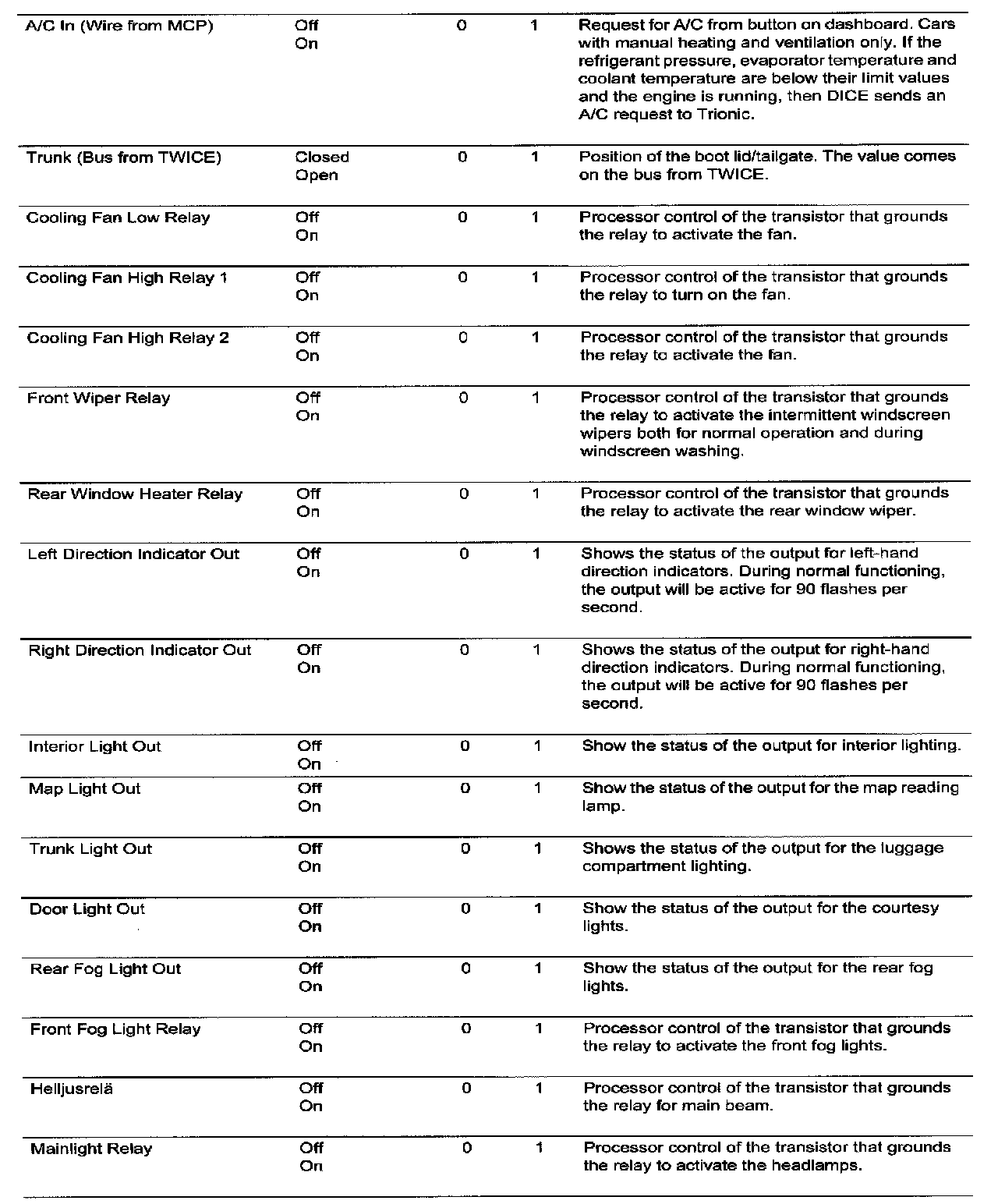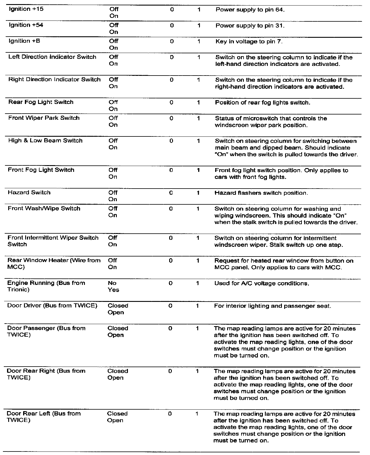 Menu "Read Values"