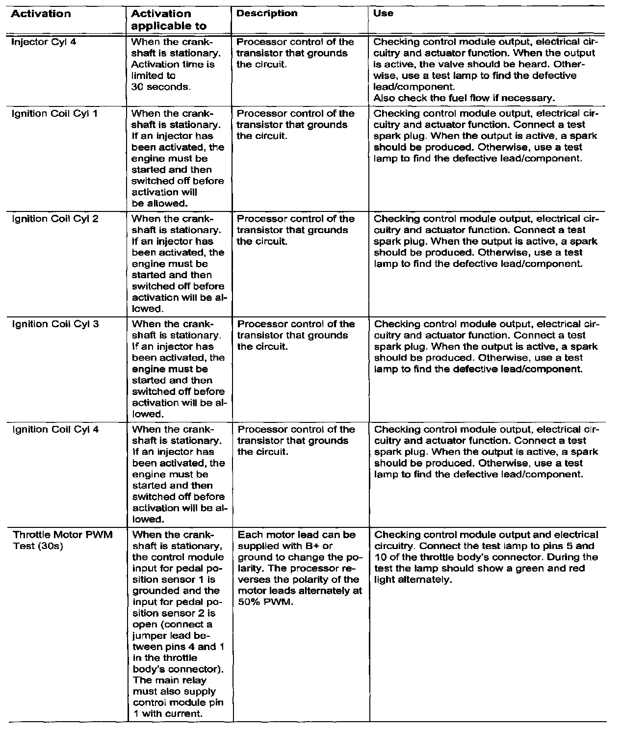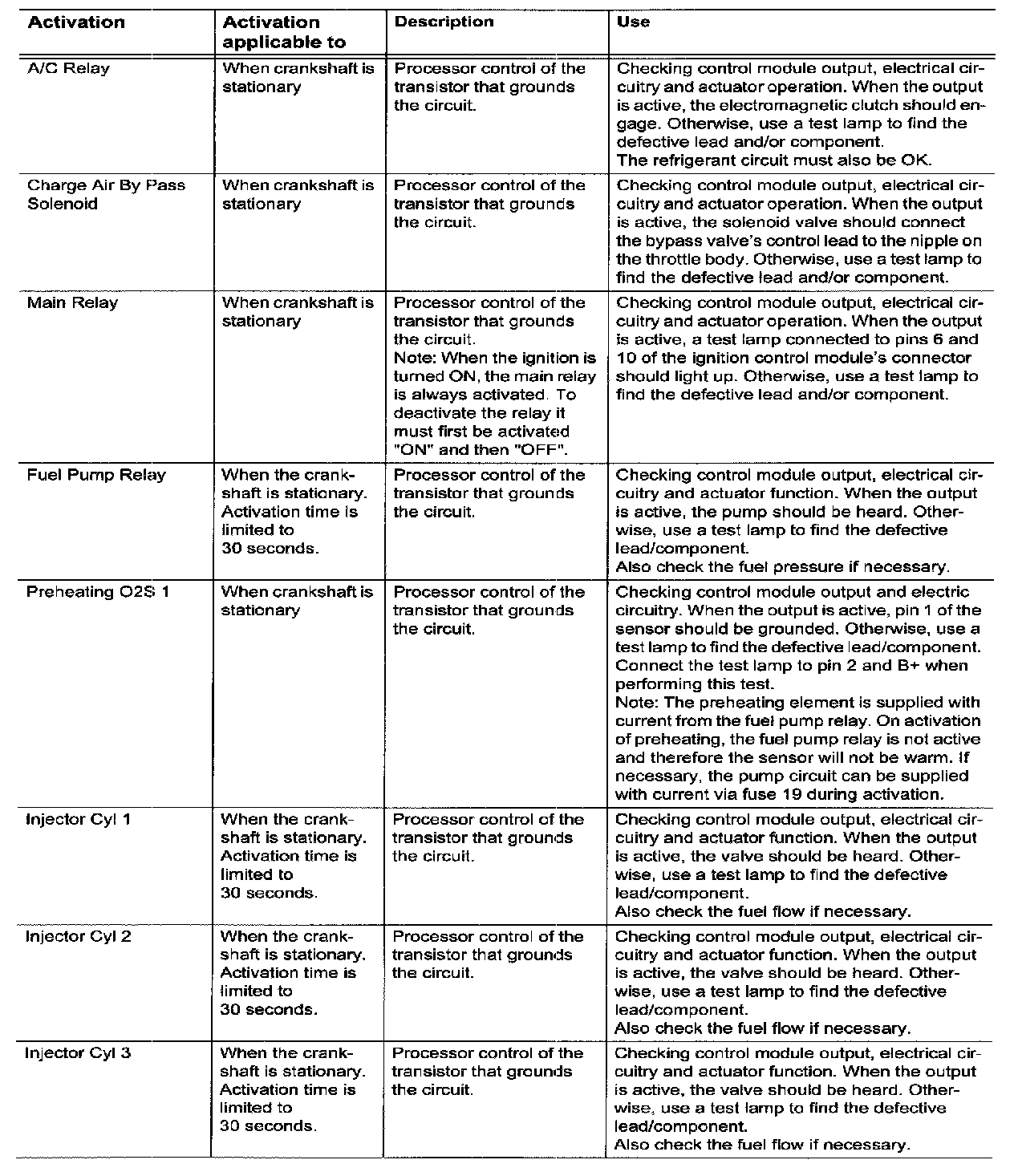 Menu "Activation"