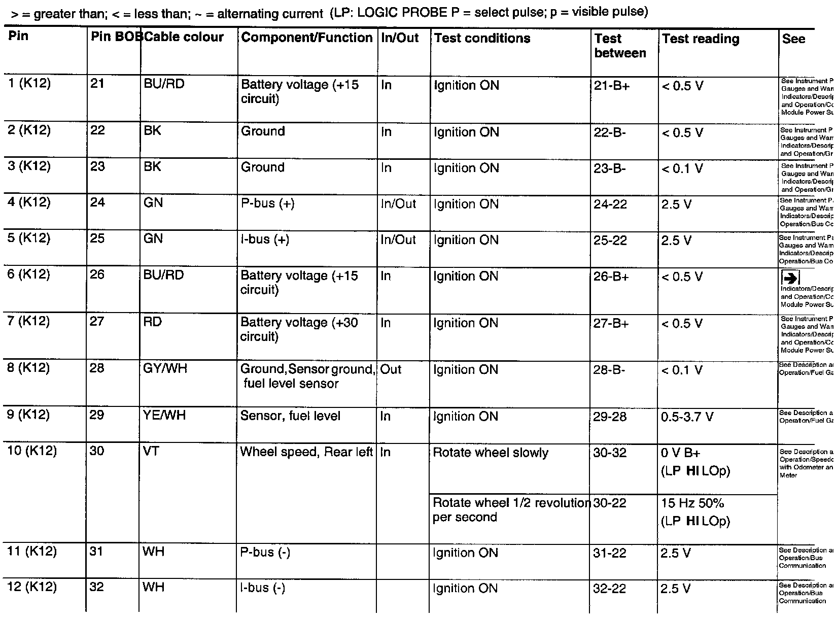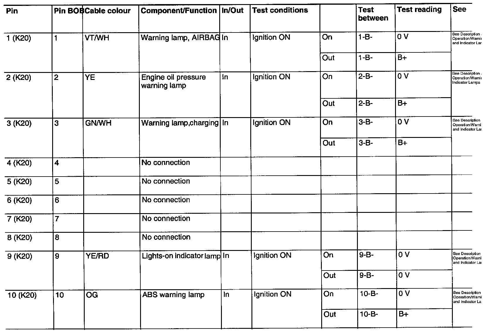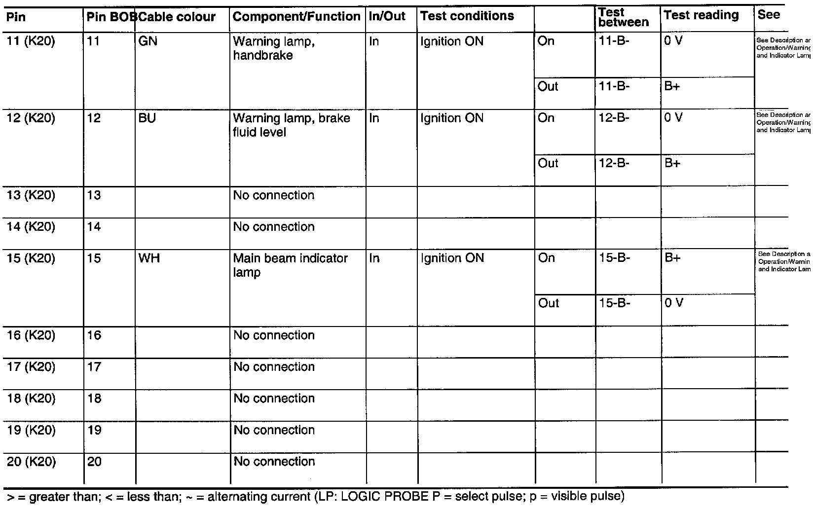 ^ If any reading is not OK, consult the wiring diagram to trace the leads, connectors or components which ought to be checked more thoroughly.