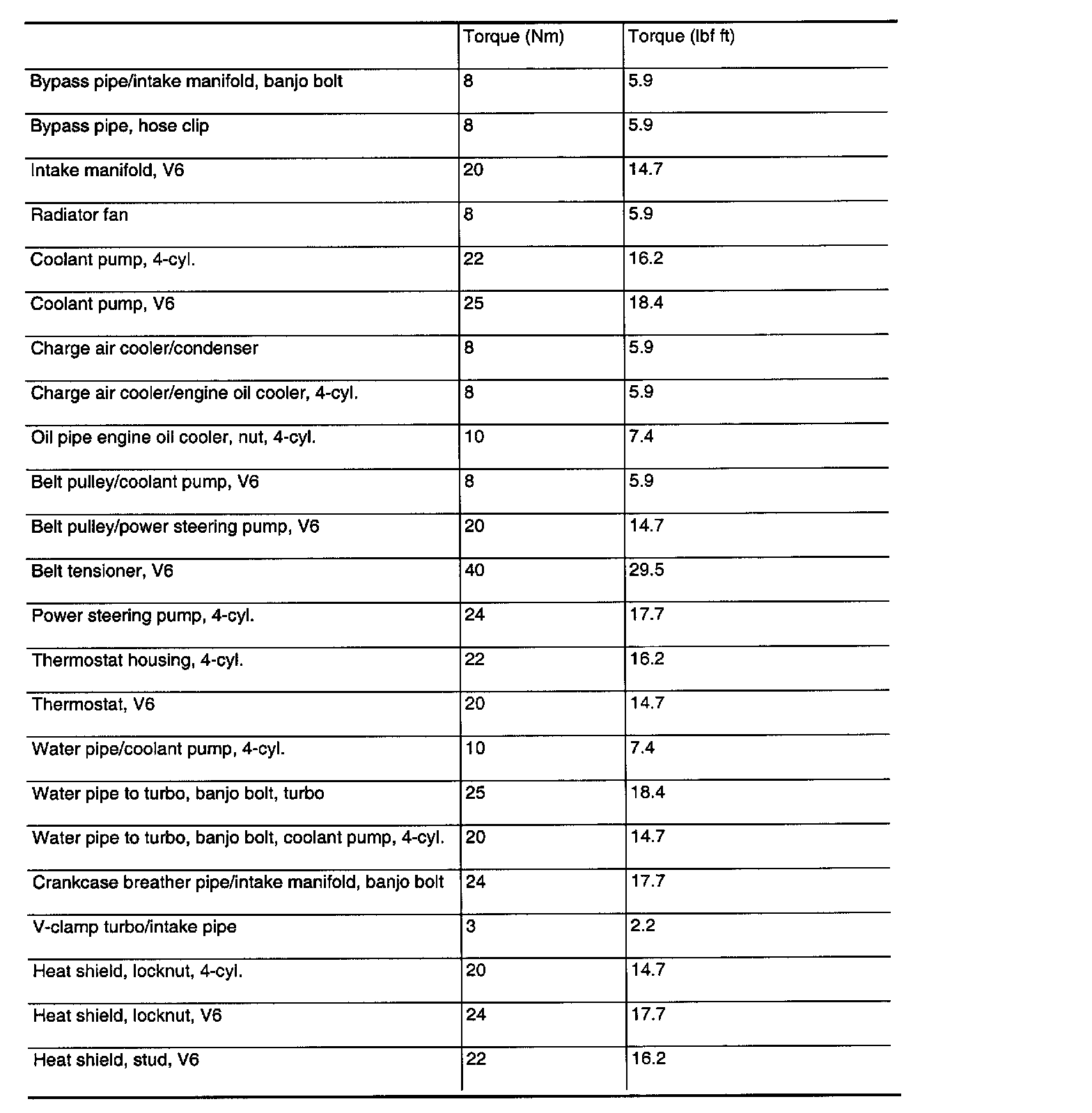 Tightening torques Note: In cases when engine type is not stated, the tightening torques above apply to both the 4-cylinder and V6 engines.