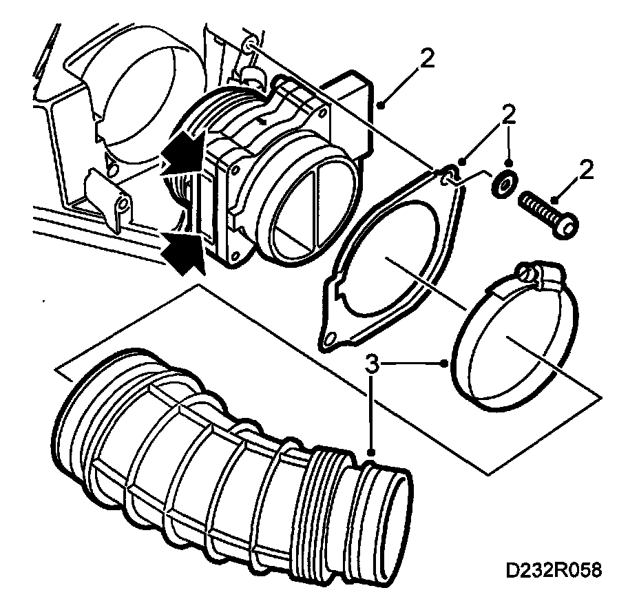 The mass air flow sensor must be fitted in the intake air pipe with the arrows in the direction of flow.