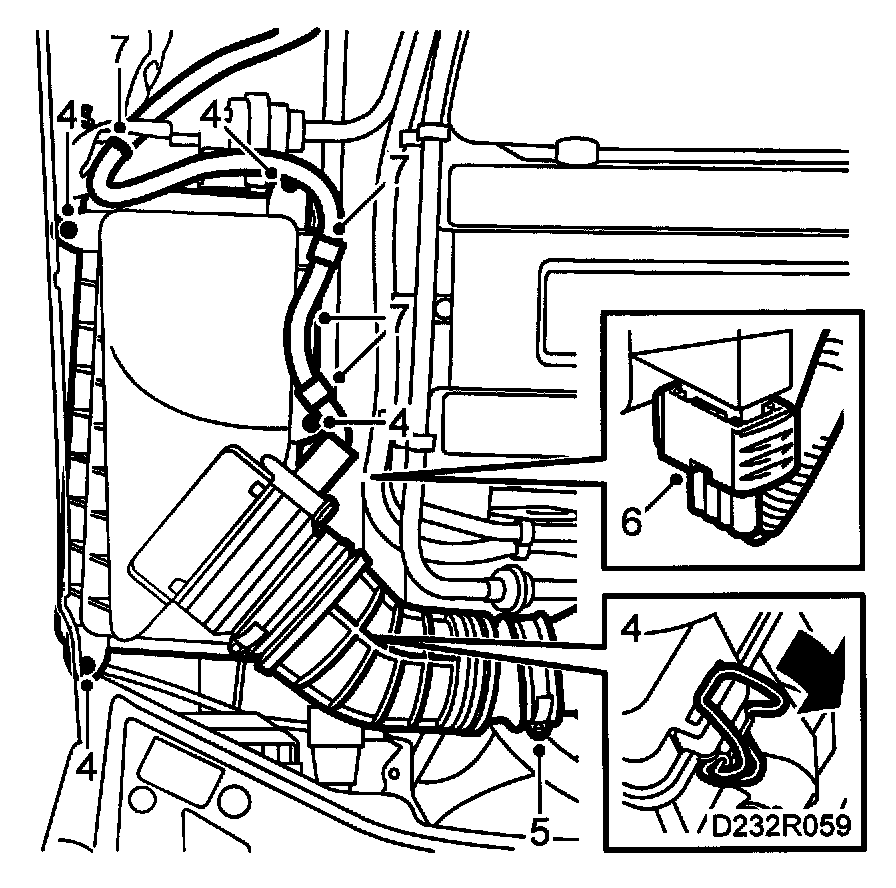 3. Detach the mass air flow sensor cable from the cable clips on the top of the air collection box.