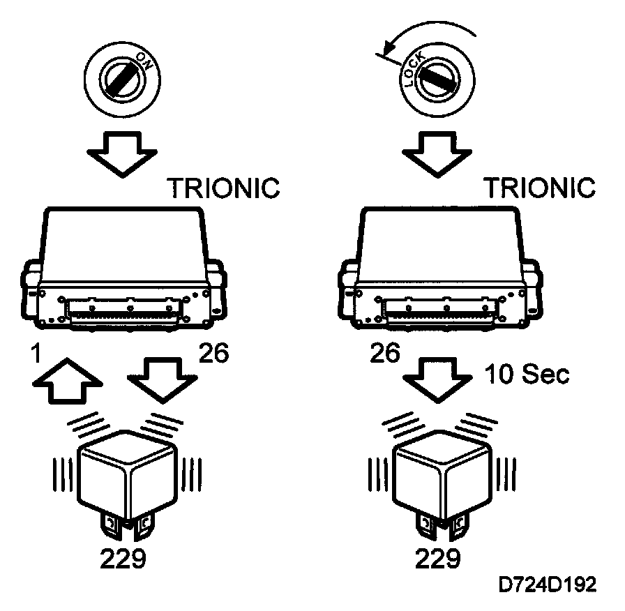 When the ignition is turned to the "OFF" position, the main relay will operate for a further 10 seconds to enable adaptation of the throttle valve to fully closed position.