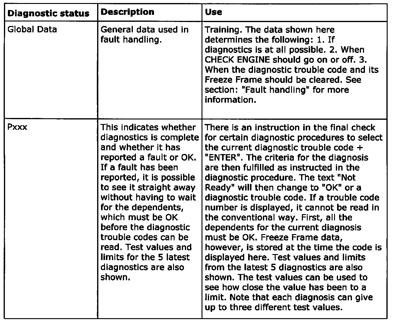 Diagnostic status