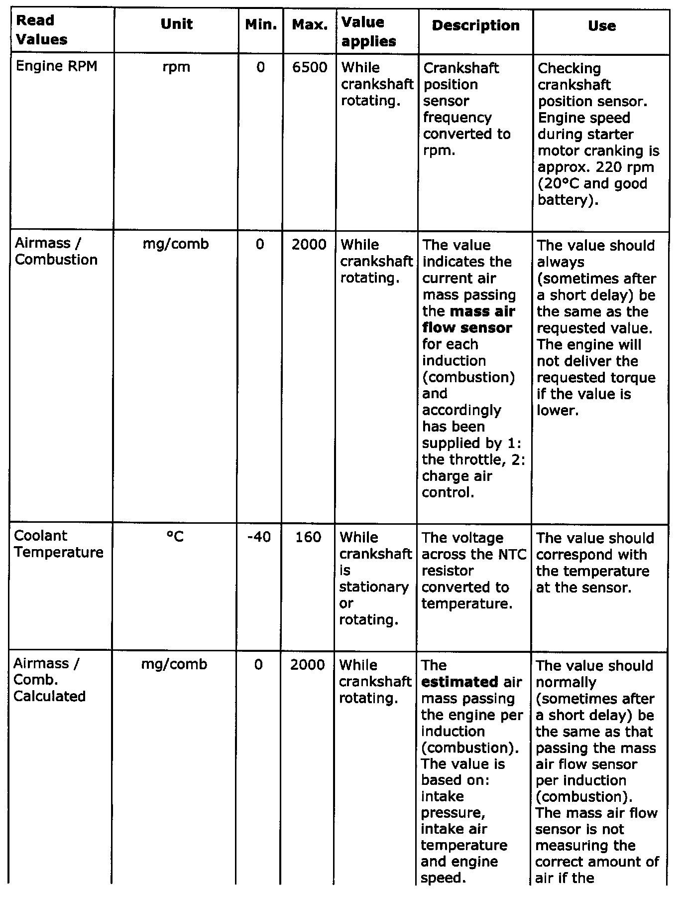 "Read Values" Menu