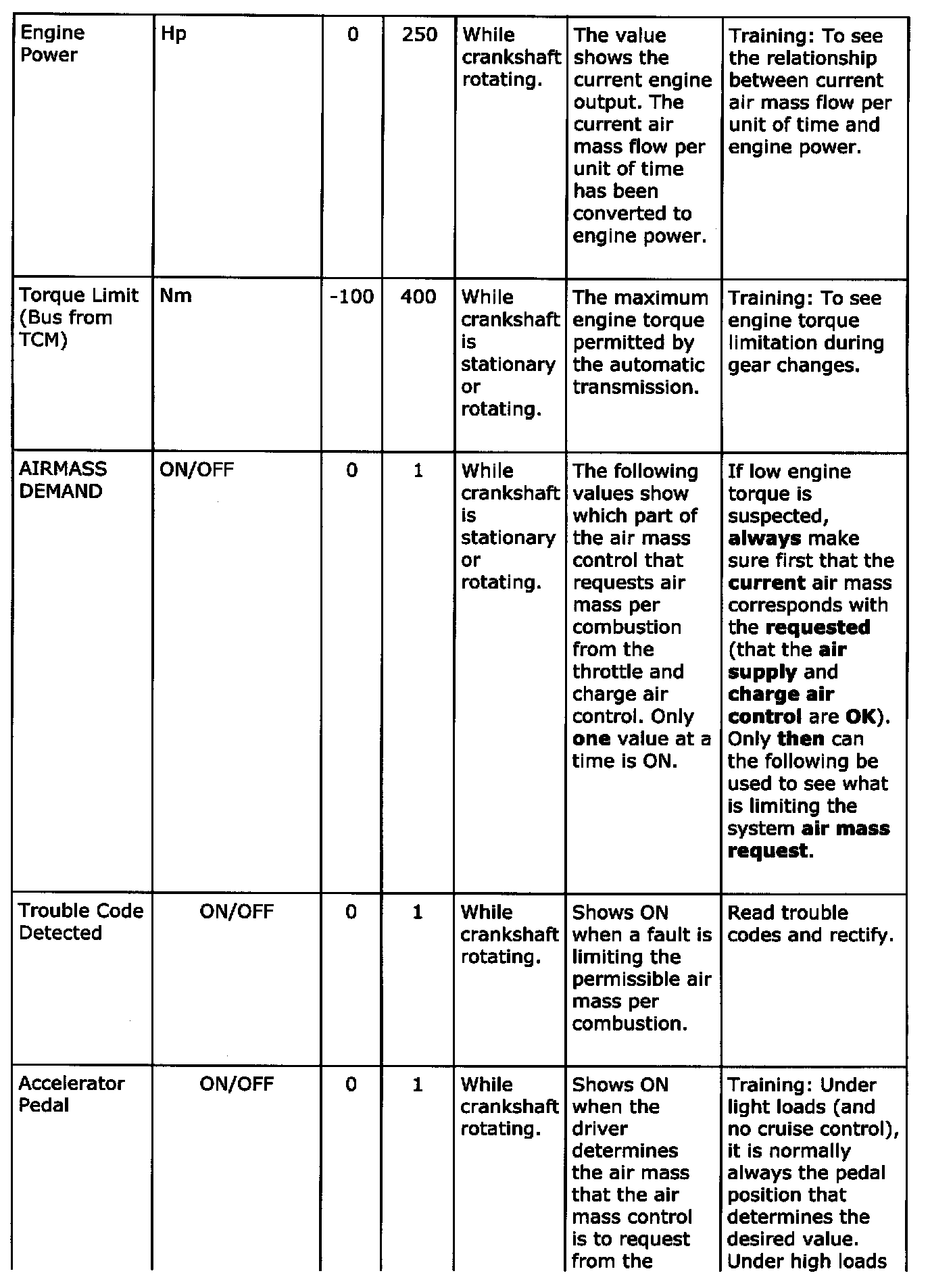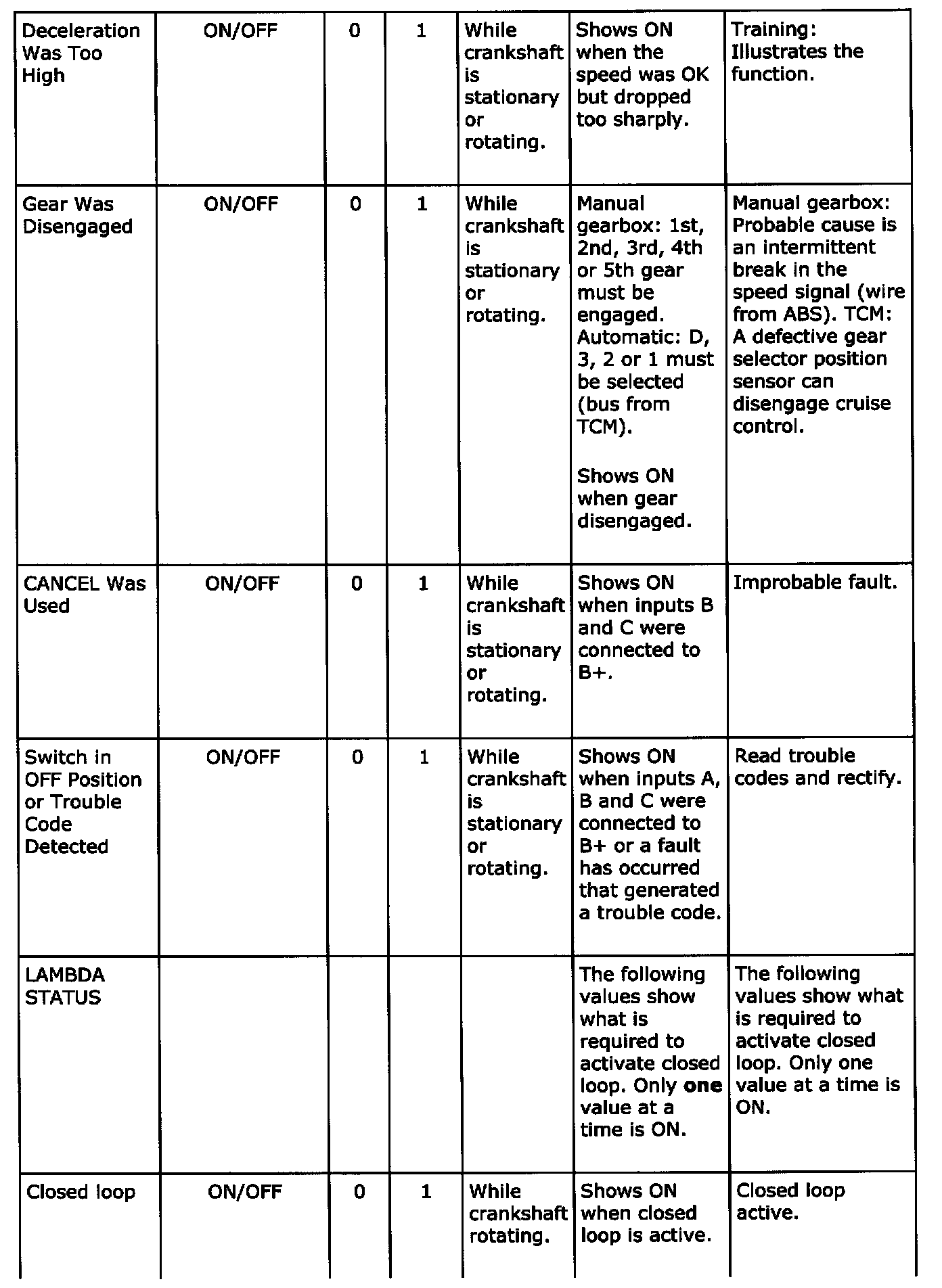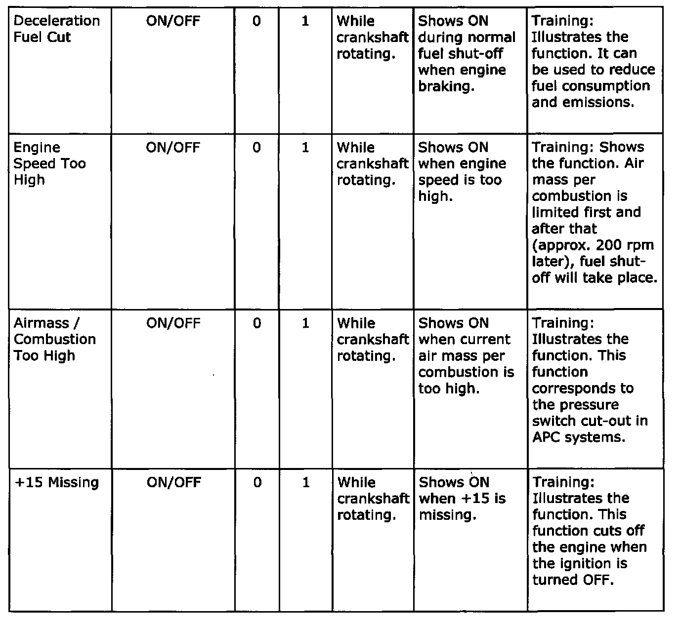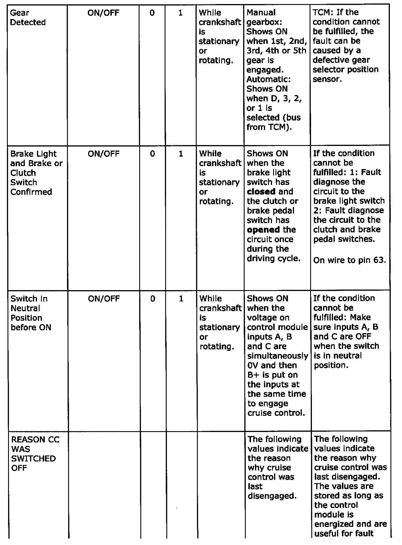 Diagnostic trouble codes