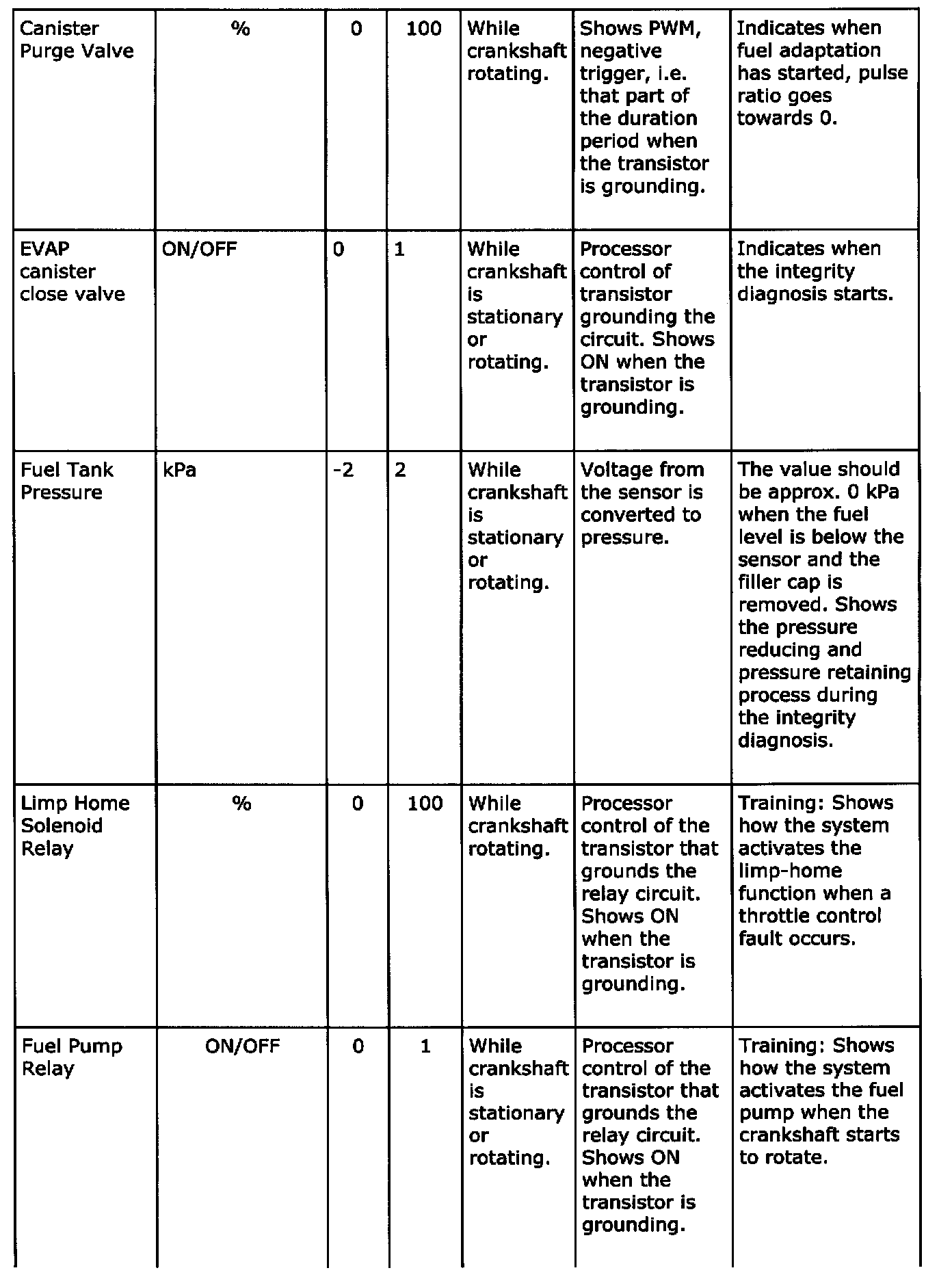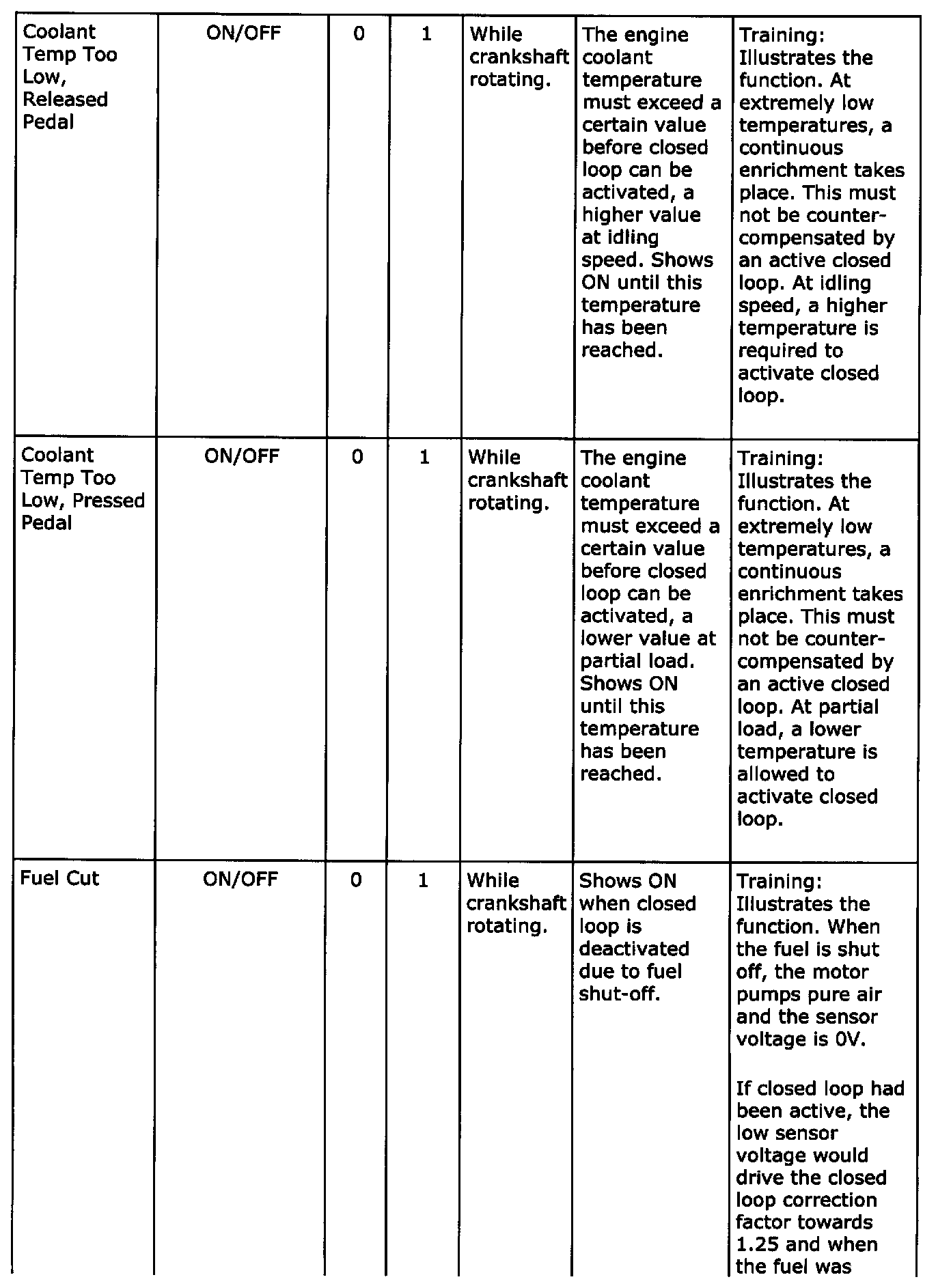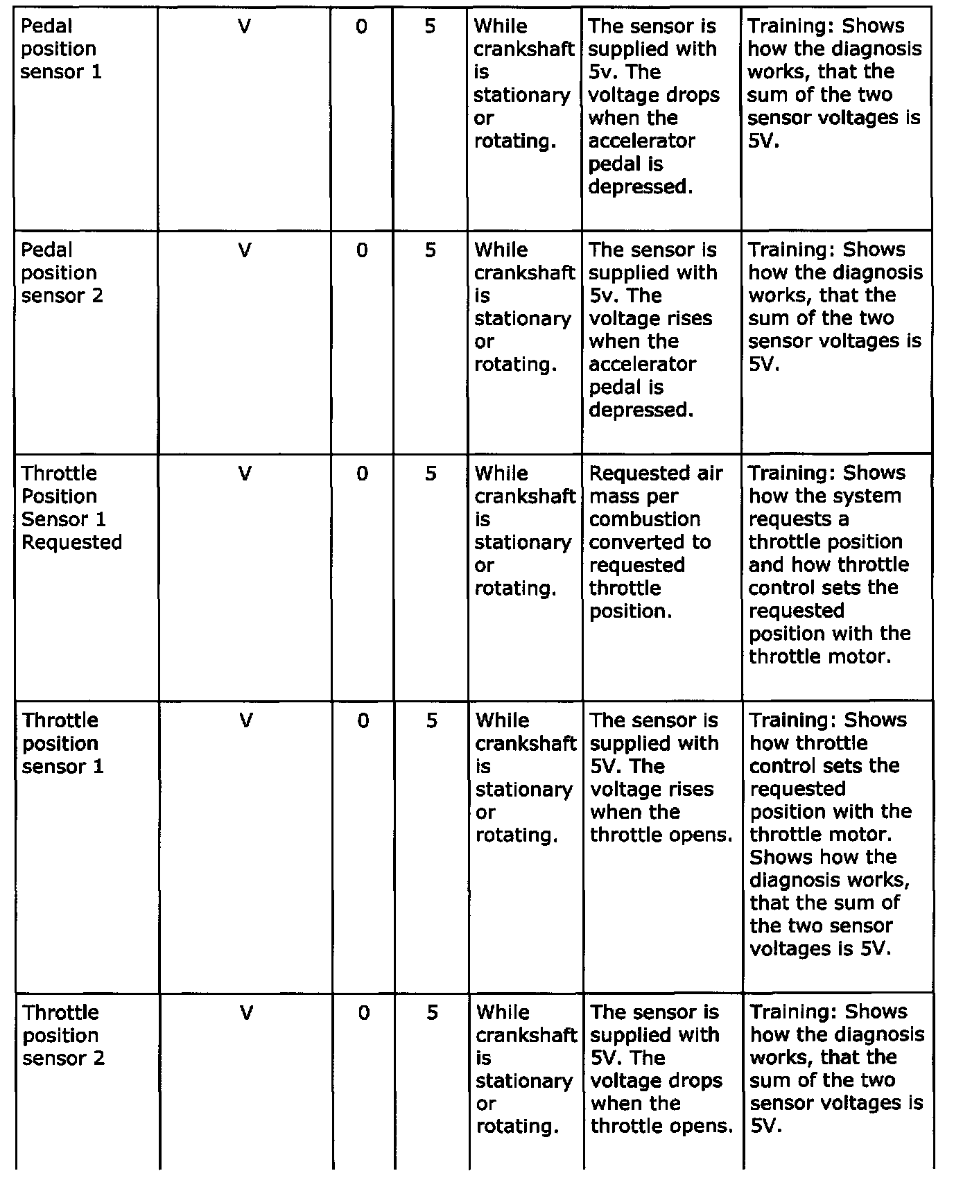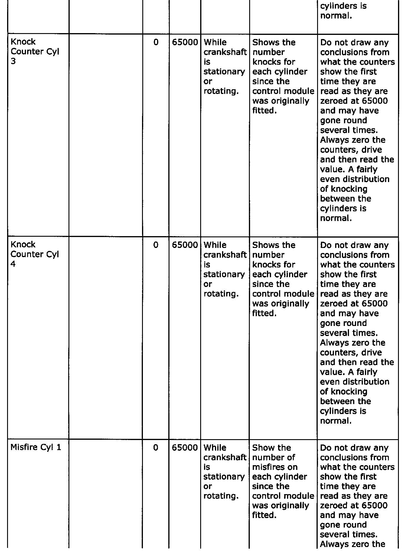 Diagnostic trouble codes