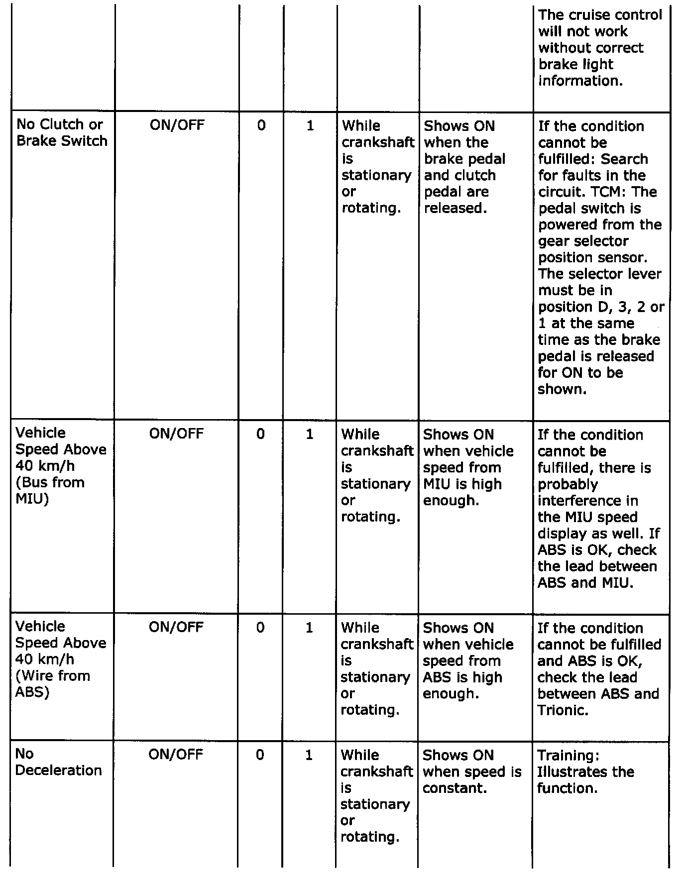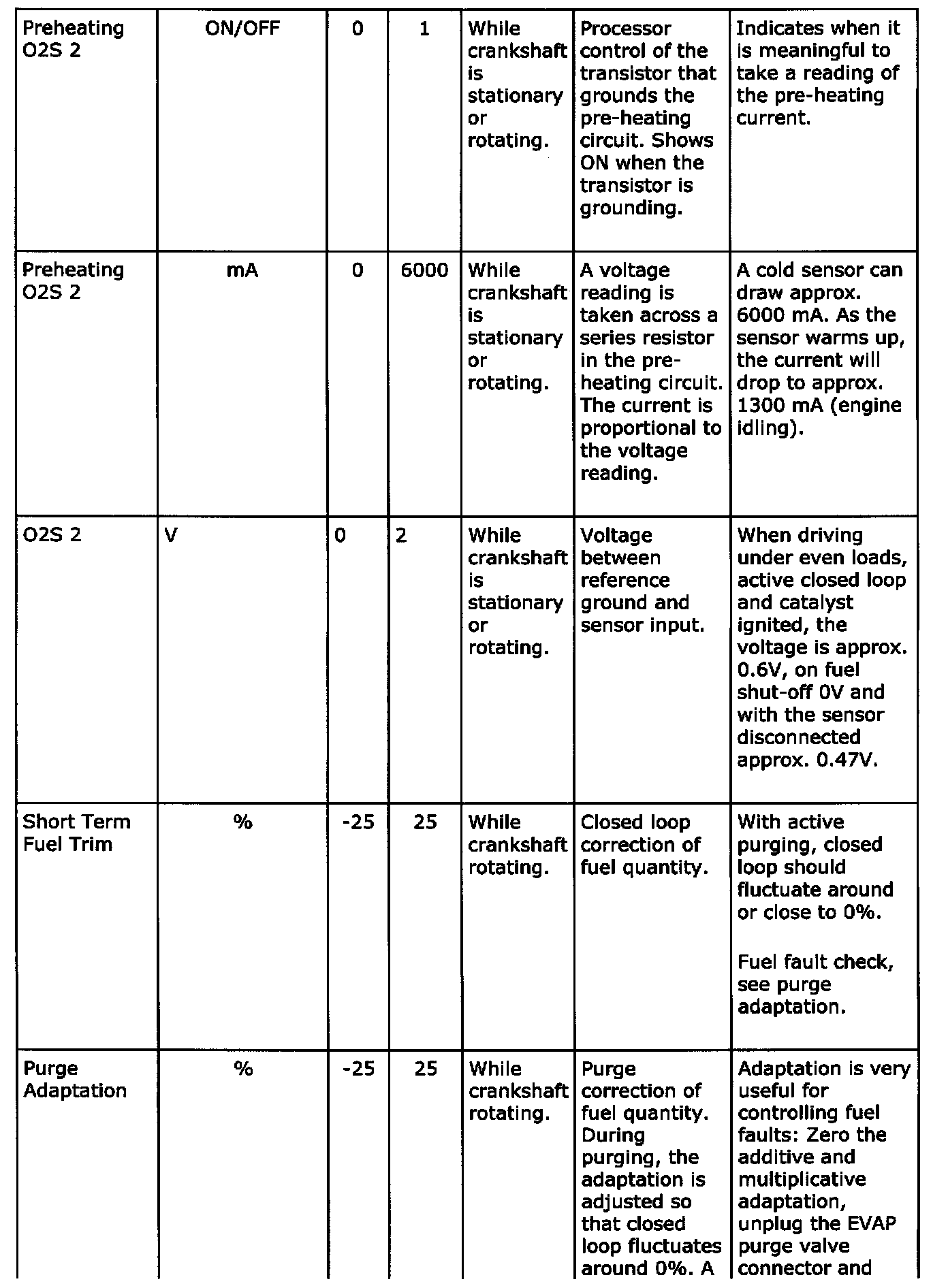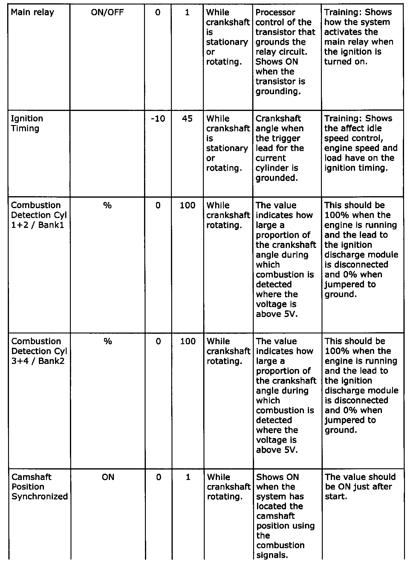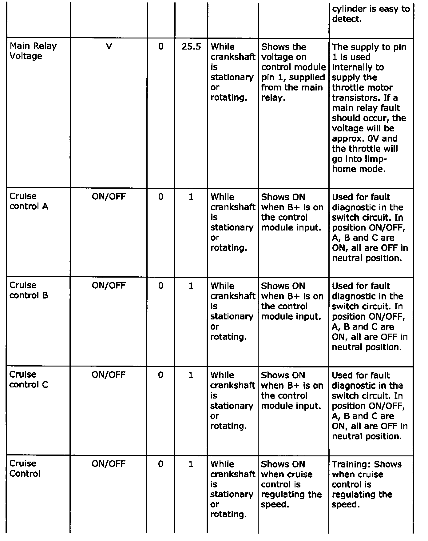Diagnostic trouble codes