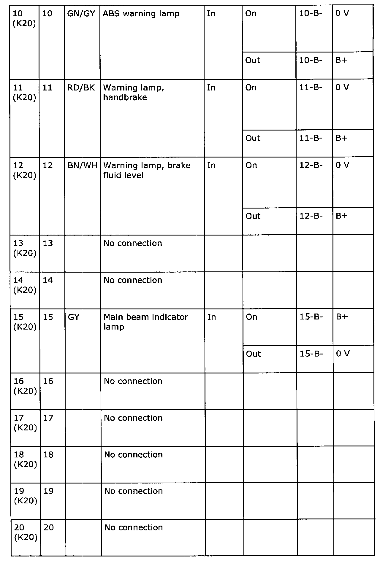 Pin 10 - 20: