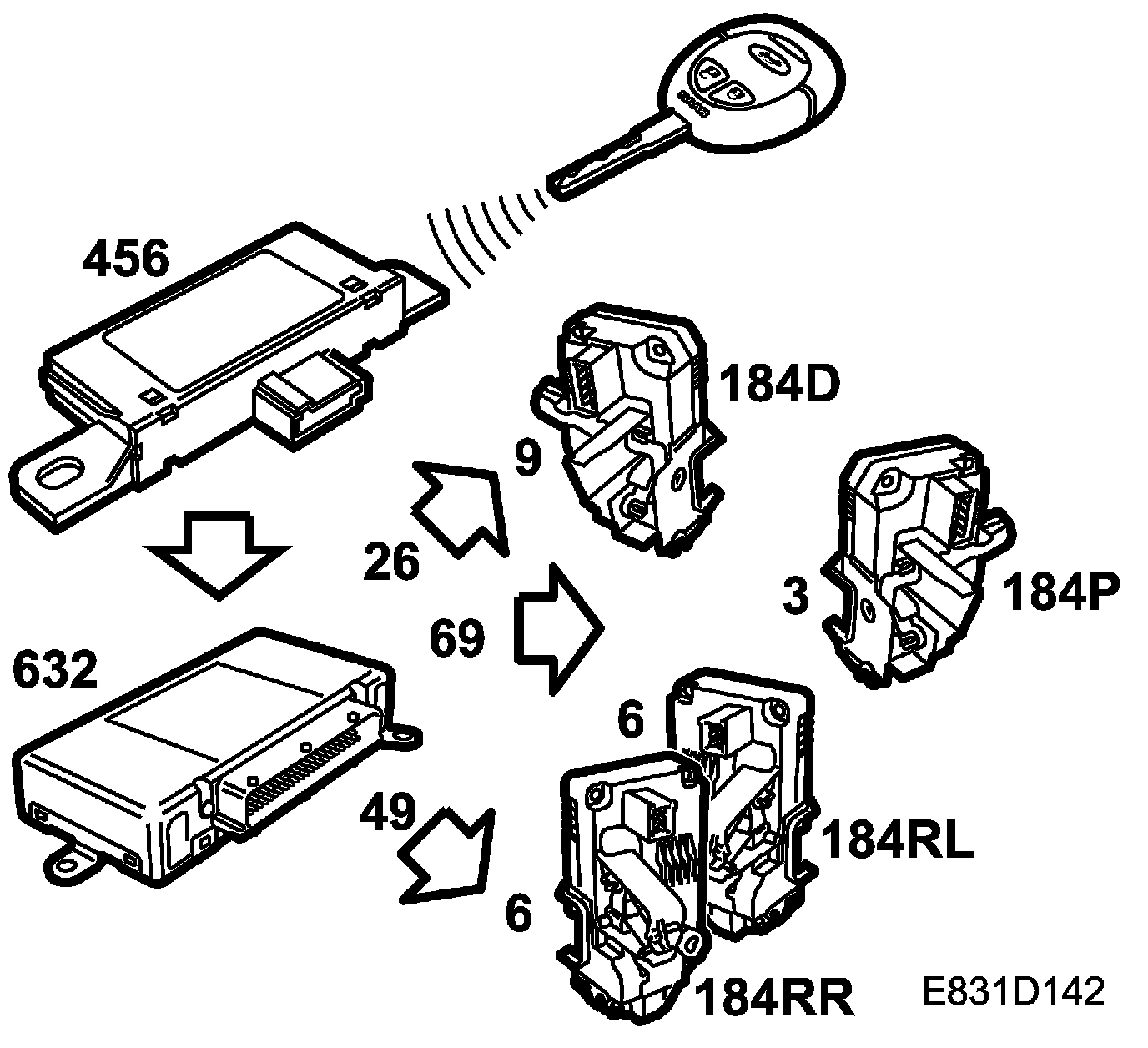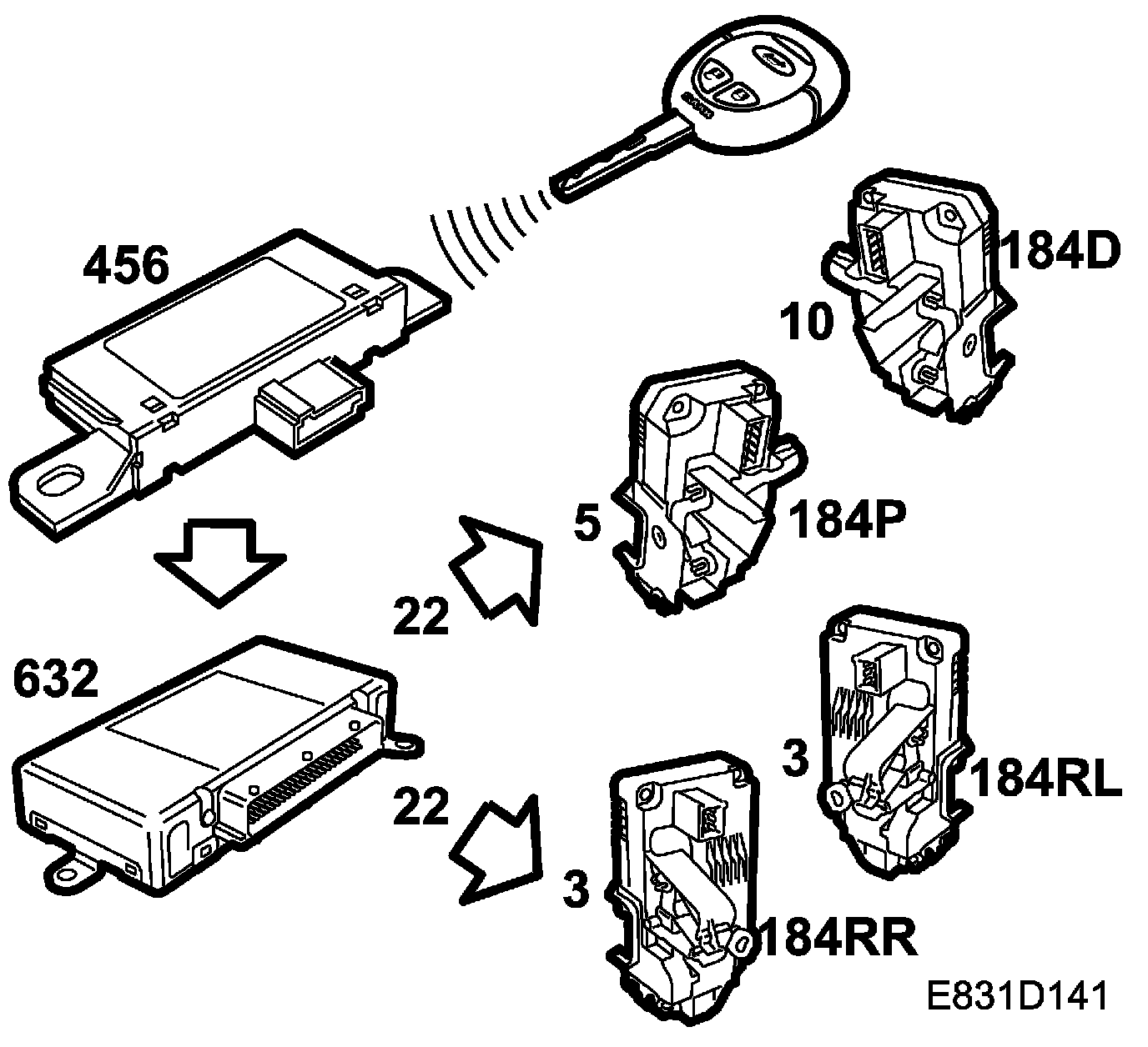 The signal from the remote control contains a unique identification code. It is a so called "rolling code" that changes each time a button is pressed. If the code is correct, the control module carries out the command. To lock the car, the remote control transmits codes continuously as long as the button is depressed. To unlock the car, the remote control transmits only one code when the button is pressed. This means that if the receiver does not register the code immediately, the unlock button must be pressed again.