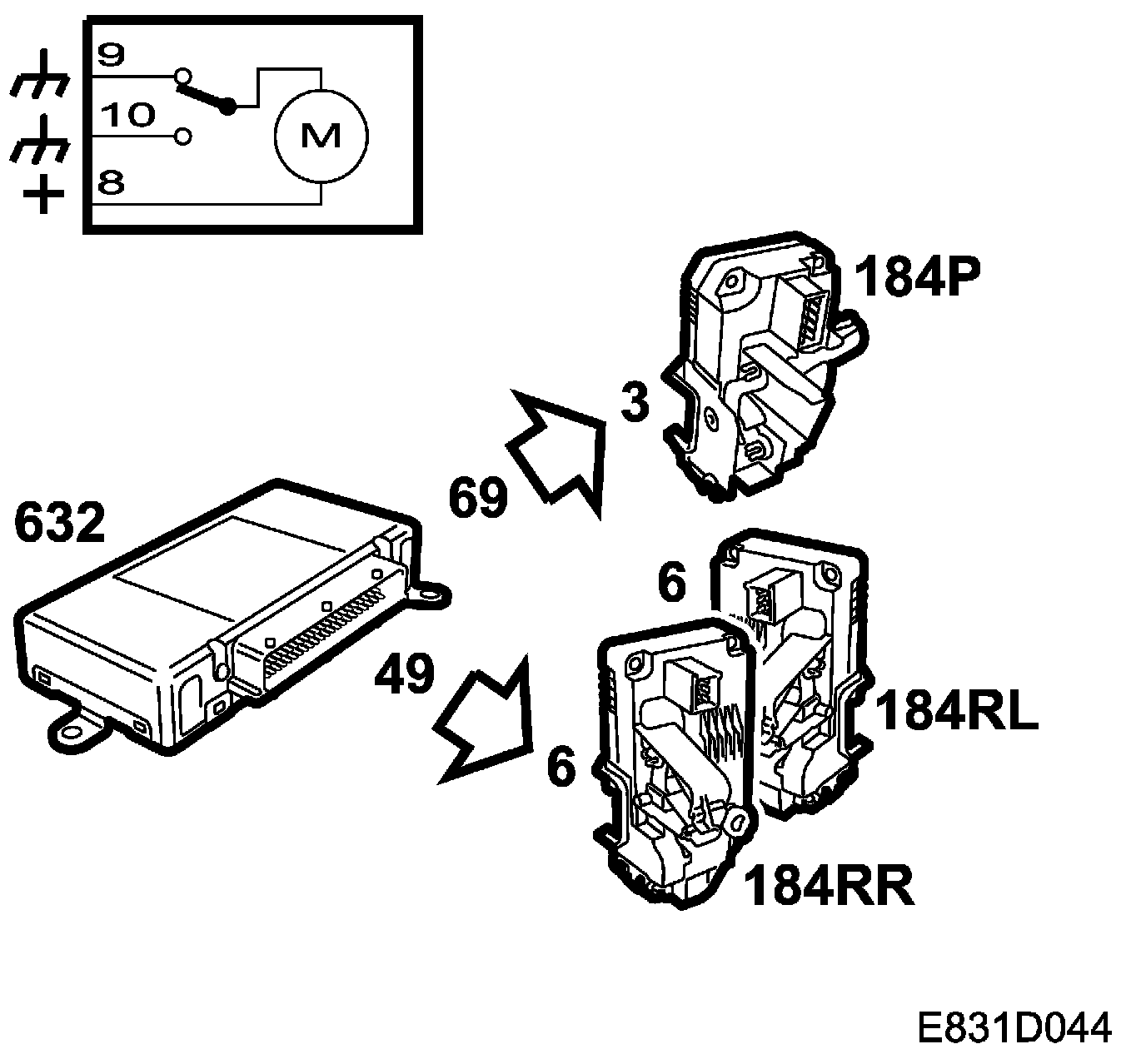 The receiver is supplied with power on pin 3 with +30 from fuse 9. It is also connected to the TWICE control module as follows: