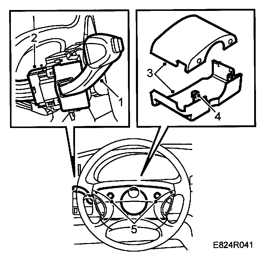 5. Turn the steering wheel and fit the two screws to the steering column cover.