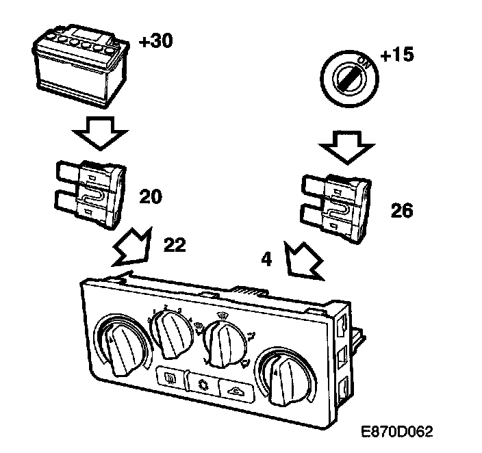 Pin 22 on the MCC unit is supplied with current form the +30 circuit via fuse 20.
