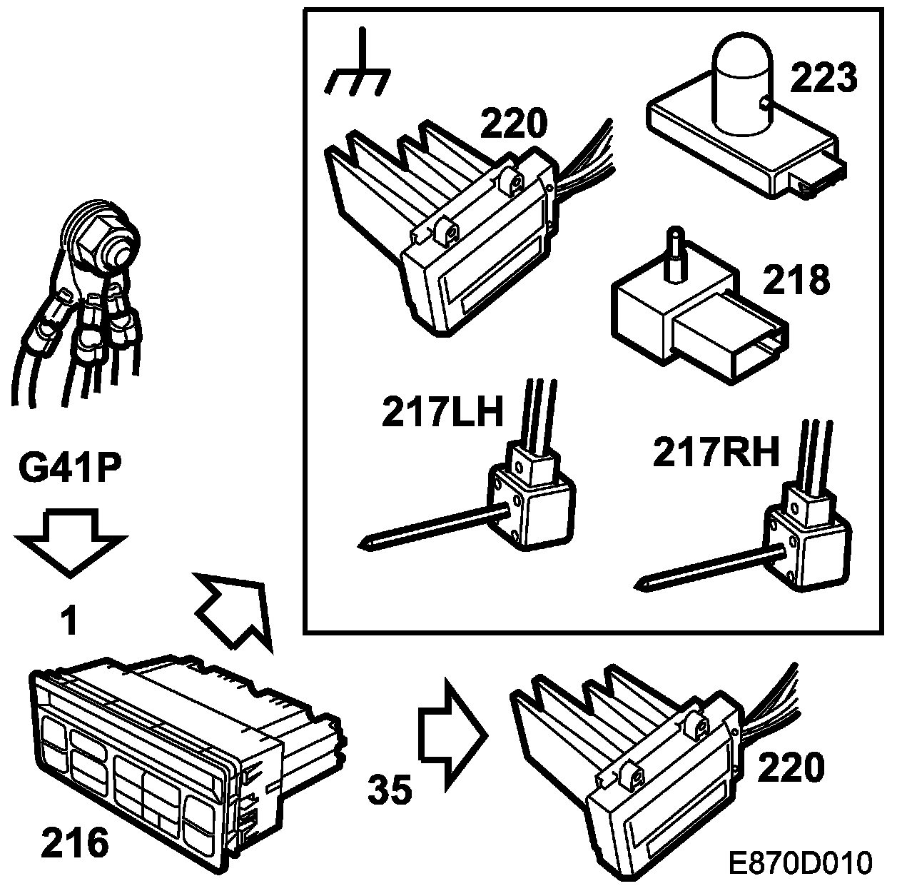 If the sensor ground is shorted to 5 V or B+, diagnostic trouble code B2945 is generated and 23 is displayed instead of right-hand temperature when calibrating.