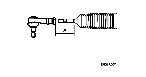 6. Check the track rod length by measuring the distance (A) between the lock nut and the groove in the track rod by the boot. The distance must be maximum 210 mm.