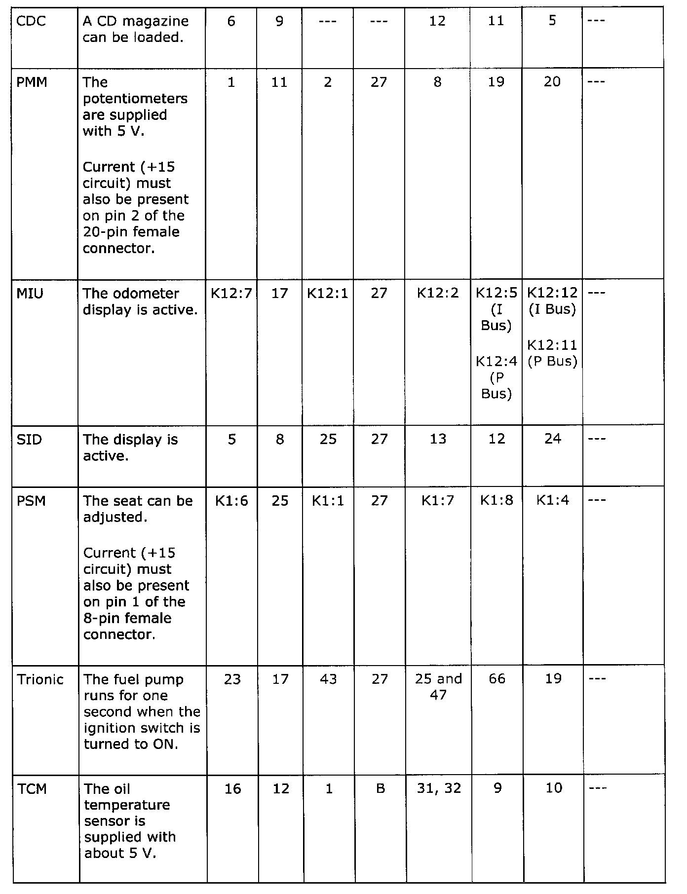If the control module is not operative, check whether it is supplied with current and grounded (columns C-E).