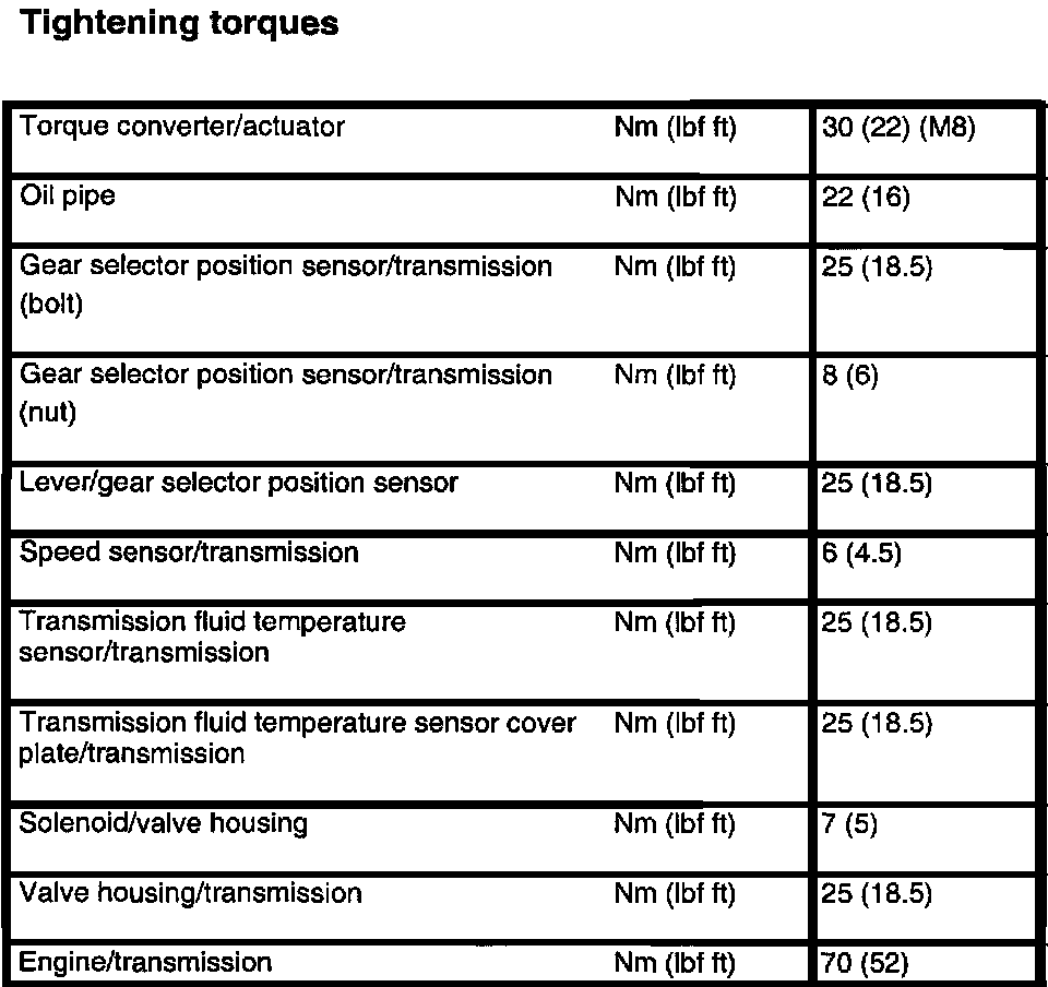 AF 30 4-spd A/T Torque Data: