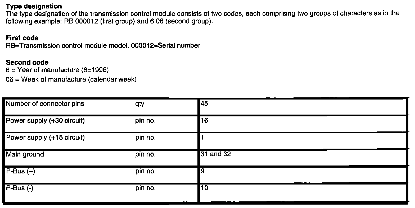AF 30 4-spd A/T Control Module Pinout Reading:
