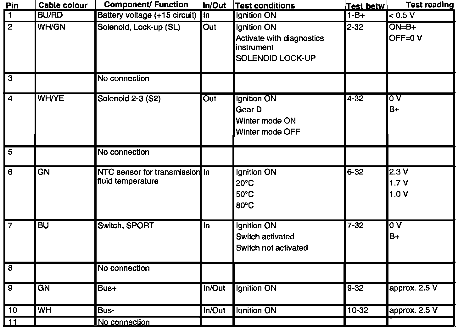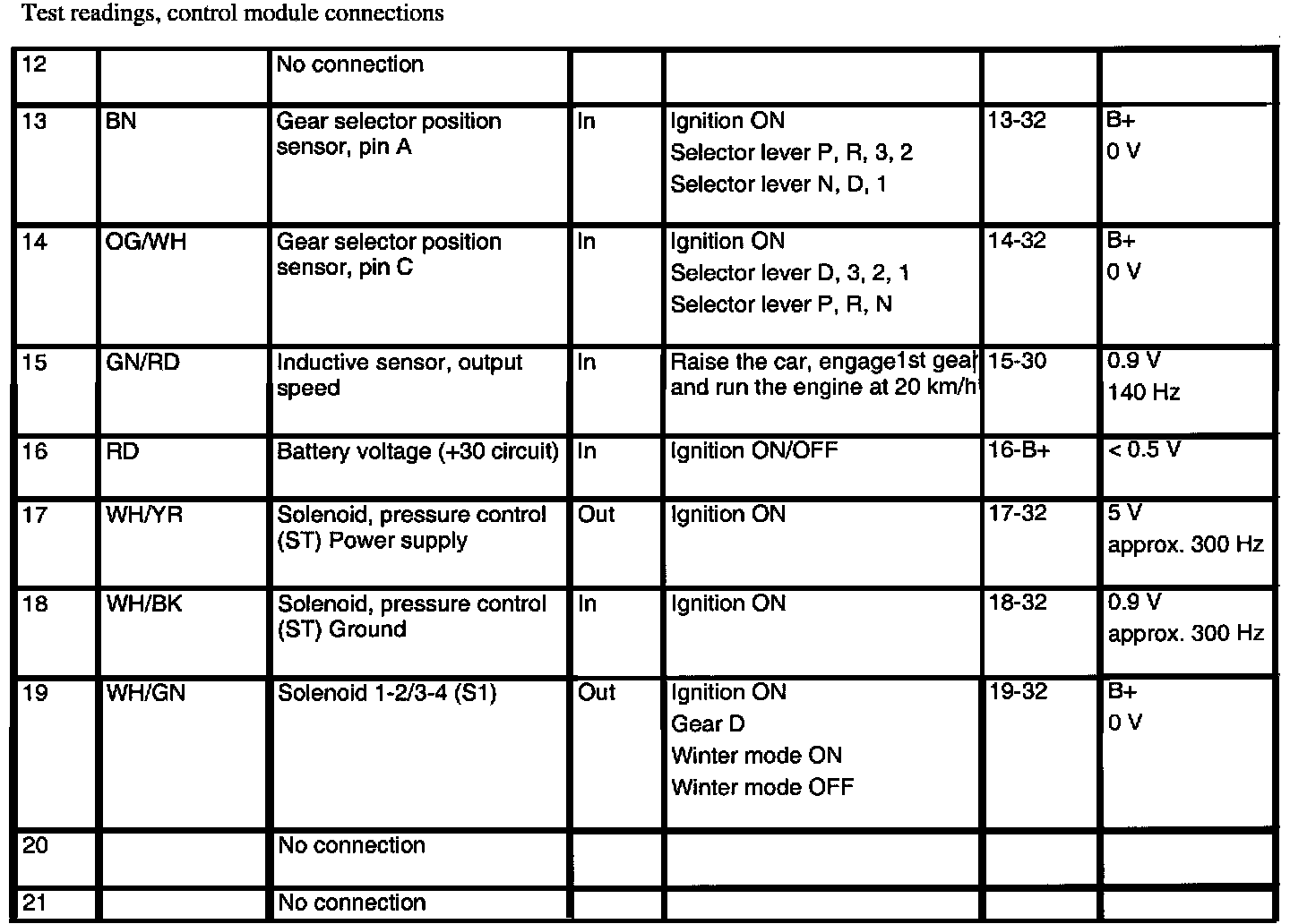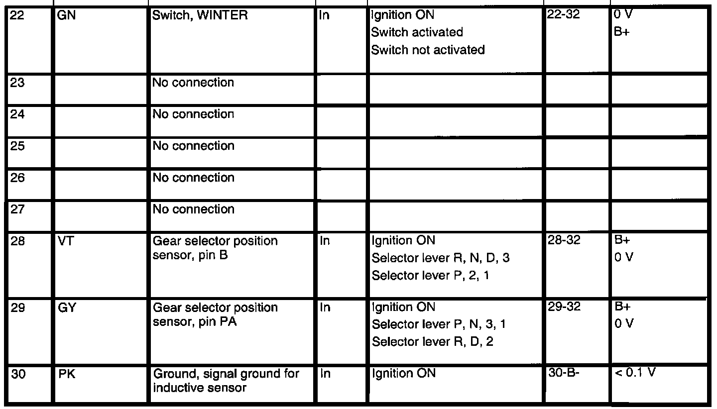 AF 30 4-spd A/T Control Module Pin Reading: