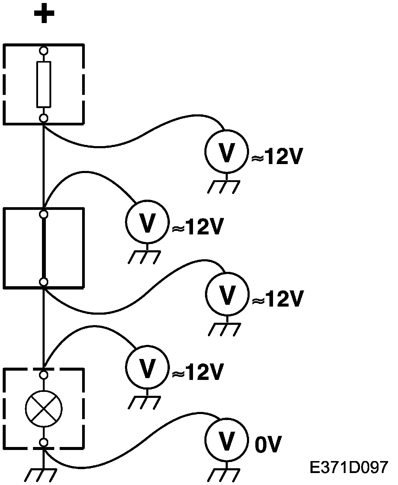 3. Connect one test lead to a good ground and the other to the point to be tested.