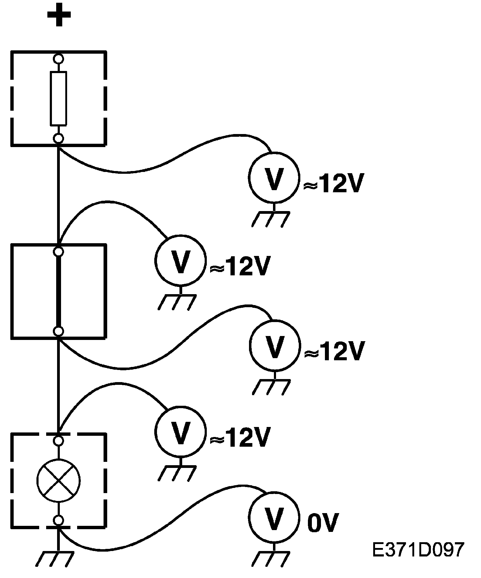 3. Connect one test lead to a good ground and the other to the point to be tested.